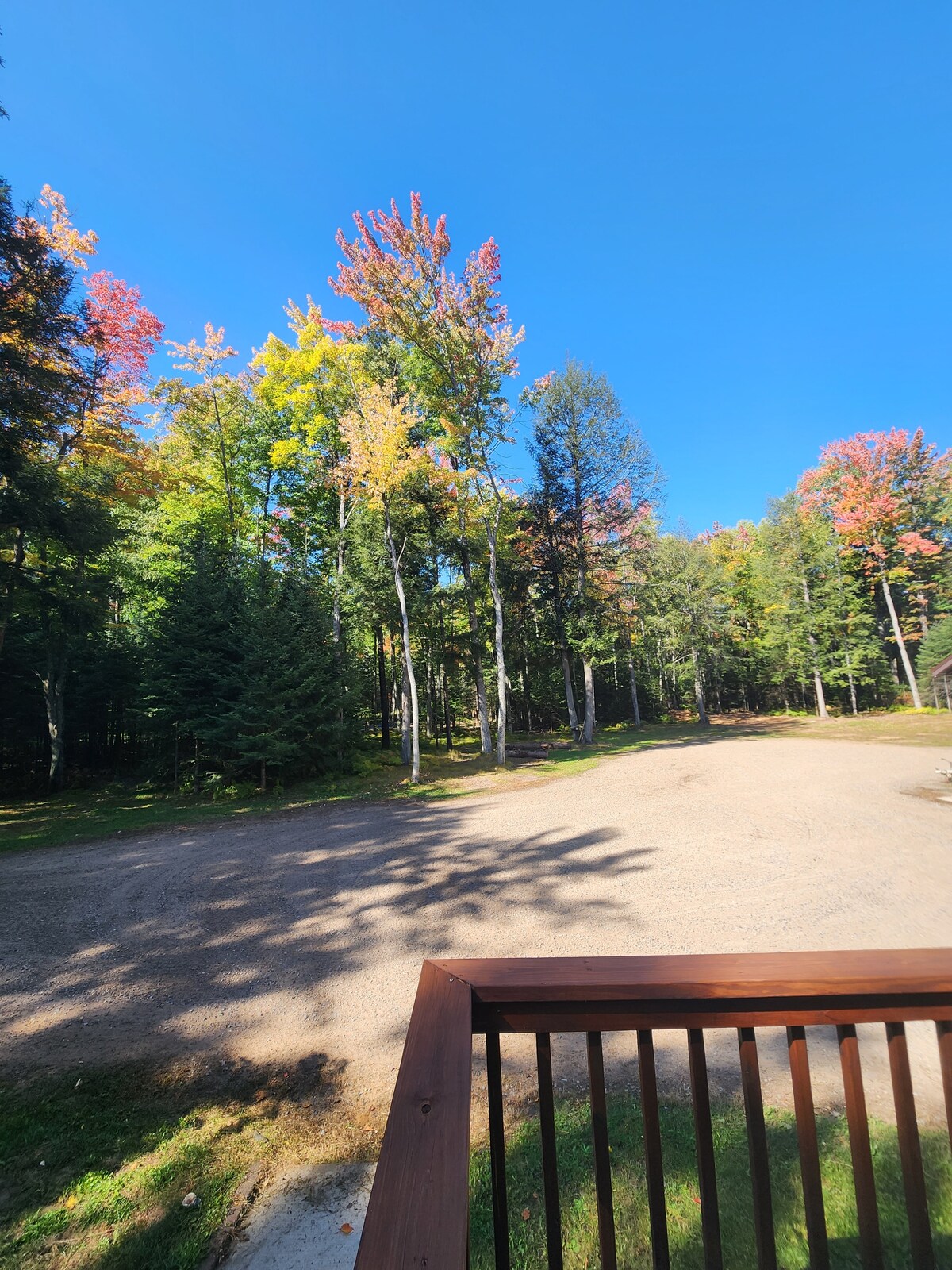 ¡Lo mejor de ambos mundos! ¡Disfruta de la privacidad arbolada (4 acres) pero también a poca distancia a pie/en bicicleta de todas las comodidades que la ciudad de Eagle River tiene para ofrecer! ¡A 1,6 millas del centro de Eagle River! Acceso a las rutas de todoterreno y motos de nieve. Estacionamiento gratuito para remolques de todoterreno y motos de nieve. Cerca del embarcadero de la cadena de Eagle River. ¡Se admiten perros, con un patio cercado! Antena de TV - estaciones locales 1 cama tamaño queen 2 camas individuales 1- Futón tamaño queen