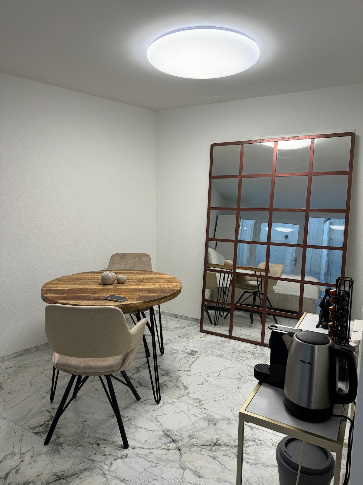 Willkommen bei Luterbach Living 27 – Ihrem modernen Zuhause auf Zeit bei Solothurn. Mit separatem Eingang, großzügiger Terrasse und hochwertiger Ausstattung ist diese Wohnung ideal für Geschäfts- und Urlaubsaufenthalte. Highlights - 23 m² private Terrasse - Gratis-Parkplatz - Waschmaschine & Trockner - 5min zu Bahn, Bus & Einkaufsmöglichkeiten - Bern und Zürich sind per Bahn erreichbar - Büro - 1 Doppelbett, 2 Einzelbetten, 1 Zustellbett - Separater Eingang für maximale Privatsphäre
