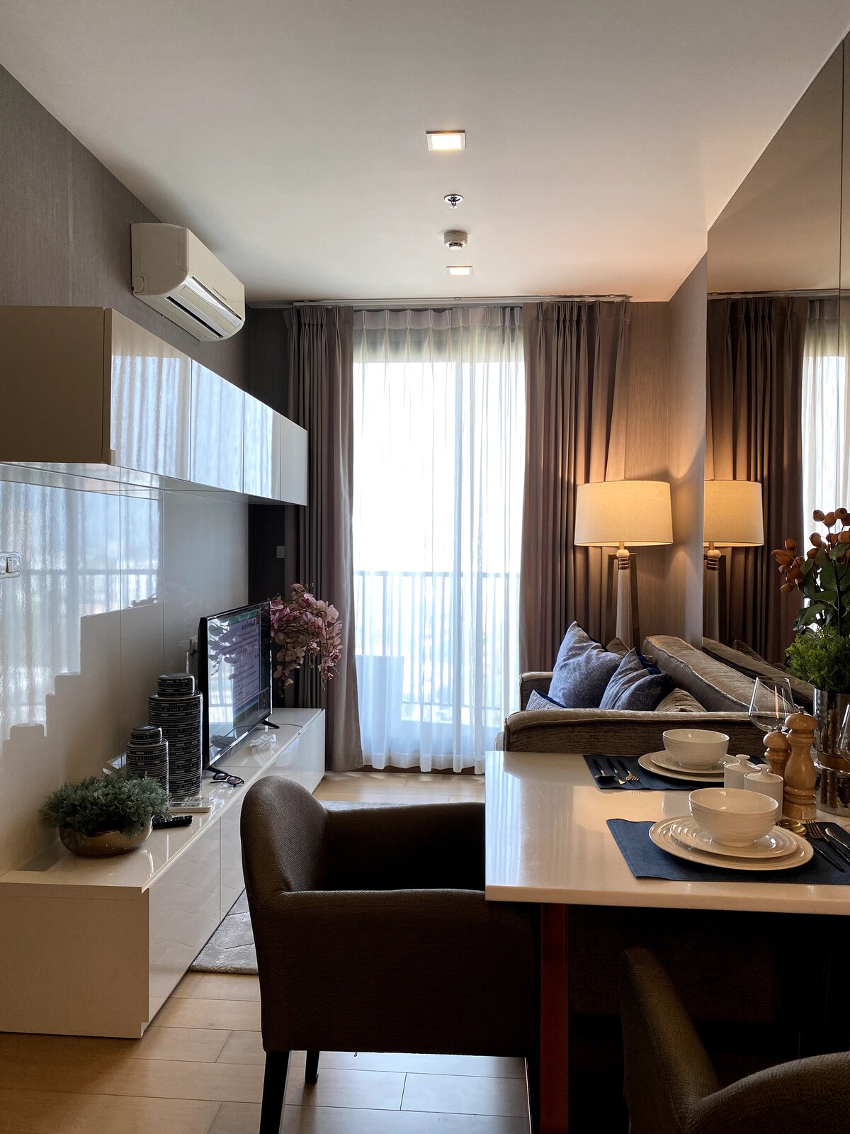 Este nuevo y lujoso condominio se encuentra en el corazón de Chiang Mai, cerca del popular Night Bazaar. El aeropuerto está a solo 15 minutos. Puedo organizar el transporte desde el aeropuerto si es necesario. Este condominio es muy cómodo con una gran cama king size y un sofá cama en la sala de estar. La cocina está totalmente equipada para aquellos que les gusta comer en. Hay un lujoso baño con bañera de hidromasaje y ducha separada. El inodoro está en una habitación contigua separada. Gimnasio, piscina, sauna en el último piso.