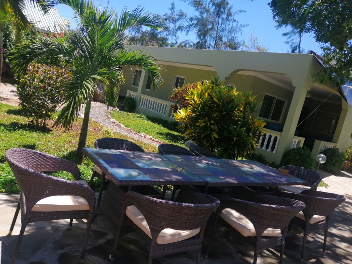 Casa de estilo suajili tradicional, se encuentra en el promontorio de coral con vistas al mar, la playa, hermosos jardines de flores, acceso privado a la playa. Piscina instalada recientemente, CONSULTA LAS NORMAS DE LA CASA La villa tiene 2 niveles y vistas al océano Índico, acceso directo privado a la playa, que se extiende a ambos lados, dentro del Parque Marino. Incluye 3 empleados, cocinero y servicio diario a la habitación, y jardinero. Capacidad para 10 personas. Se adapta fácilmente y se hace cómodo para alojar grupos más pequeños, utilizando solo los dormitorios de arriba.