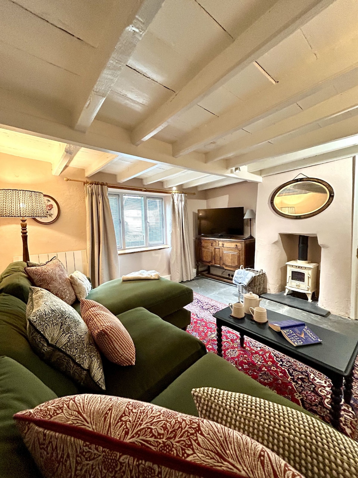 Manor House is grade II listed, set amongst an array of historic buildings at Botelet Farm, with a large private garden to the rear and views reaching across rolling fields and up to Bury Down iron age hill fort. Nestled in a valley in South East Cornwall, staying at Manor offers the chance for a peaceful escape with 300 acres to explore, safe spaces for children to play, chickens wandering free range outside, a trampoline in the orchard, and therapeutic massage and wellbeing workshops.
