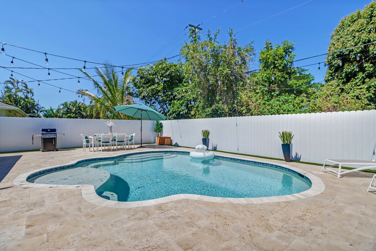 ¡A 1,6 km de la playa! Piscina, cama king, barbacoa, juegos