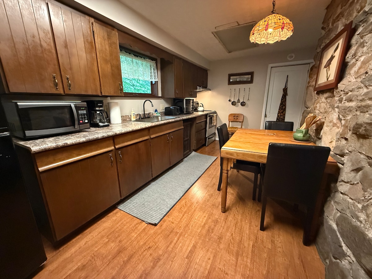 BNB Breeze Presents: Frog Hollow Lodge! Enjoy an unforgettable riverside adventure in beautiful countryside! Paddle downstream on a kayak, keep watch of the little ones with the river in front, or go fishing and pick up some goodies from Country Beary Shack. Delight in a cookout over the fire pit. At night, relax under the stars on the deck. Come and create new memories for the perfect family vacation! - Outdoor Oasis w/ Deck, Picnic, Fire Pit + River Access! - Kayaks - Grill - Wi-Fi