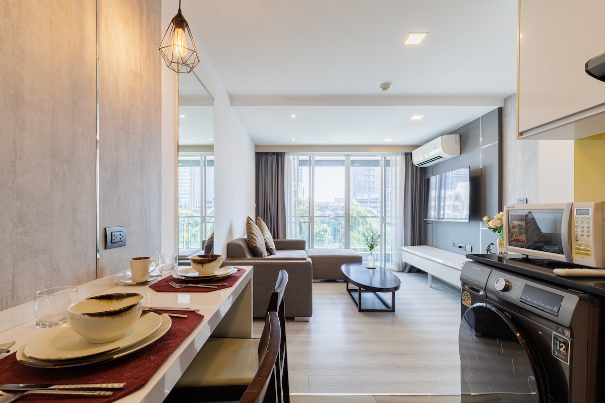 Apartamento de lujo ligero en el centro de la ciudad de Bangkok/a 10 minutos de la estación de tren ligero/distrito comercial de mujeres/paraíso de compras/cómodo apartamento de una habitación y sala de estar/estación de autobús este