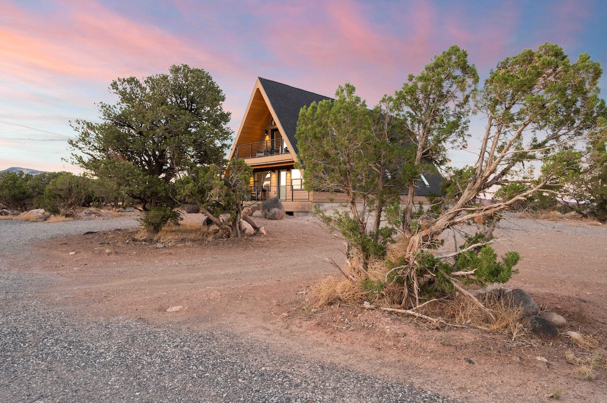 La Pinyon House es tu base de operaciones mientras exploras las amplias rocas rojas y los emocionantes alrededores del país de Capitol Reef. La casa está convenientemente ubicada entre Torrey Town y el Parque Nacional Capitol Reef a lo largo de la histórica autopista 12, situada en la cima de un acantilado desértico con impresionantes vistas de 360 grados desde cada ventana. **Si estamos reservados durante tus fechas, echa un vistazo a nuestras otras casas alpinas al lado, la Juniper House y la Sage House.