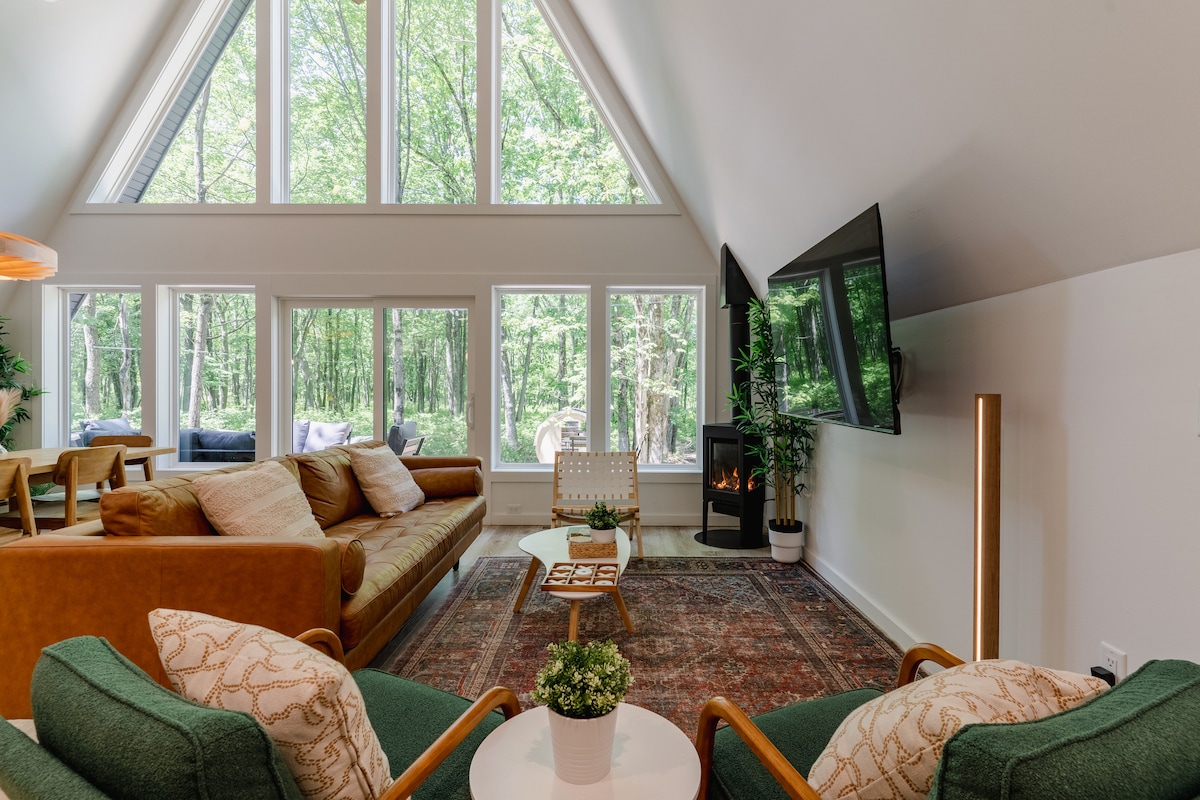 ¡La temporada de esquí y tubing está a la vuelta de la esquina! Escápate al "Eclipse", una moderna cabaña de inspiración escandinava ubicada en .5 acres con vistas a un sinfín de bosques. El Eclipse ofrece servicios cuidados, como una llamativa chimenea de gas, una divertida consola de arcade, golf de disco, etiqueta láser y un delicioso carrito de palomitas para las noches de cine. Relájate en el jacuzzi bajo las estrellas o disfruta del encanto en forma de A iluminado con LED. En 'Eclipse', todas las estrellas se alinean para una estancia verdaderamente mágica.