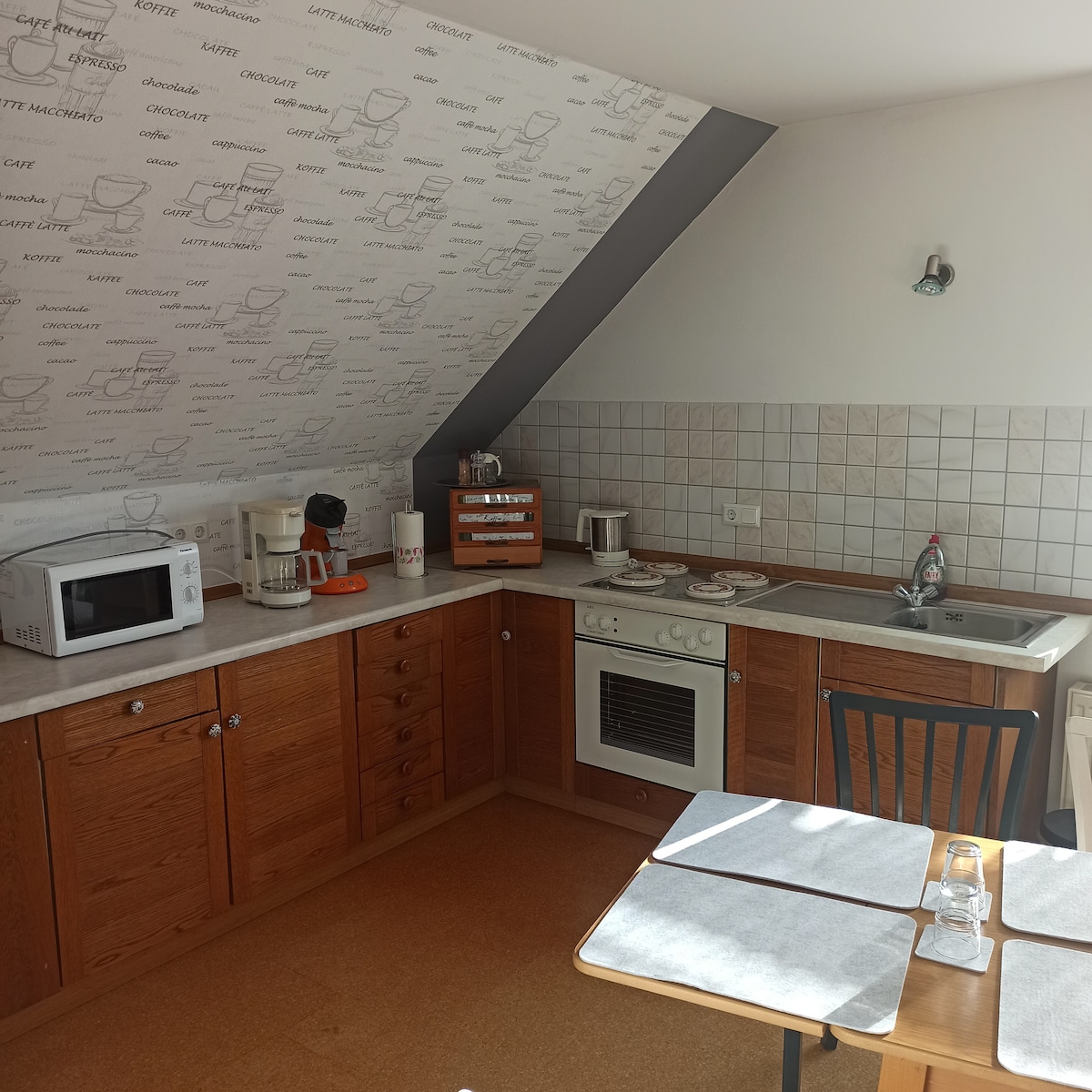 El apartamento amueblado con mucho cariño se encuentra en un edificio protegido de la época de los fundadores en el ático, en el centro de Creglingen (a 17 km de Rothenburg) La casa pertenece a nuestra panadería. En la planta baja hay una cafetería donde también se puede desayunar. (Incluido) Se pueden guardar bicicletas. Previa consulta, los huéspedes pueden echar un vistazo a la panadería. El apartamento, la cocina y el baño están equipados con todo lo necesario. No se admiten mascotas
