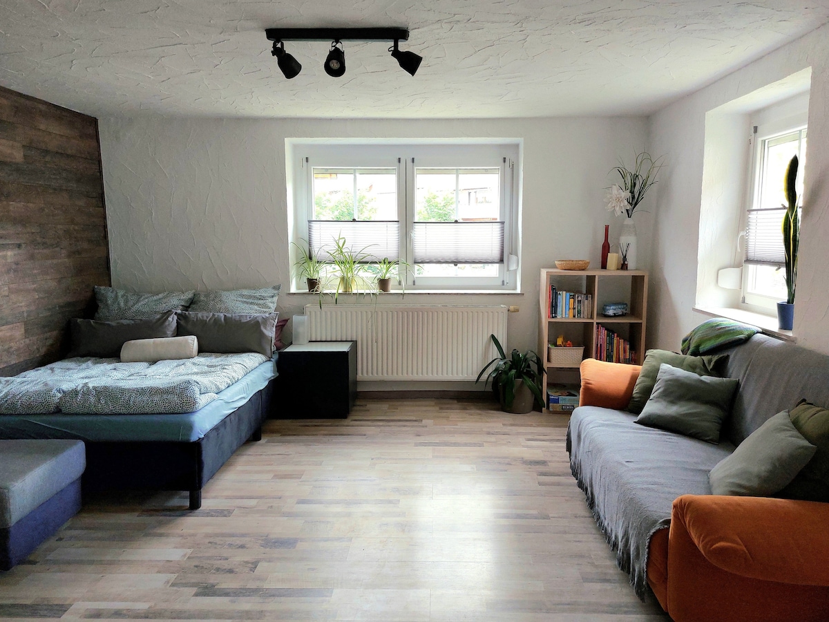 Por favor, INFORMACIÓN IMPORTANTE SOBRE LA COCINA (lea más abajo: ¡más información relevante!) Nuestra habitación de huéspedes se encuentra en el segundo piso de nuestra casa de campo al final de un callejón sin salida. Después de una excursión por el Jura de Suabia, podrán relajarse y disfrutar del panorama del Jura desde el balcón. Nuestra habitación puede ser utilizada por dos adultos y hasta dos niños pequeños (hasta 12 años). A petición, proporcionamos una cama plegable y una cuna de forma gratuita.