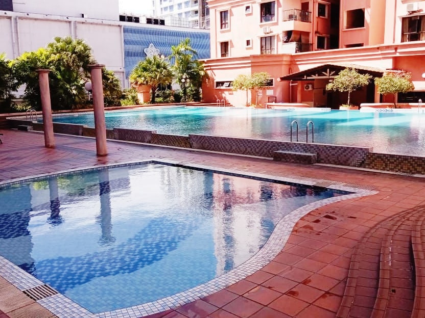 Stunning Sea view from the house. Chilling at the balcony. Swimming pool@level 6 Living Room, Queen Size bedroom, private sofa bed corner with curtains. Ensuite bathroom with hot and cold water shower. Large refrigerator with ice cube , mini kitchen with electric cooker, pot,plate,spoon,fork are available . Light cook at the kitchen. Filter water machine hot and warm. Please select 3 guest if you need single bed setting convert from sofa bed.