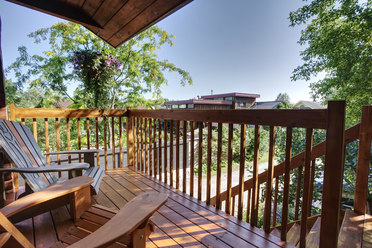 Relajate en esta cabaña única en la ciudad. La Tiny House es una cabaña privada de 9' x 12', totalmente aislada, para 4 estaciones con un sillón, cocina americana con agua corriente, cama queen, hamaca Loftnet y ducha al aire libre. Disfruta de la belleza natural de nuestro patio trasero lleno de árboles de medio acre, pero aún cerca del centro de Guelph. Esta es una experiencia de glamping que requiere apreciar la vida en minicasas. Los huéspedes tienen acceso a un baño portátil separado, caminando unos 30 metros hasta la parte trasera del patio.
