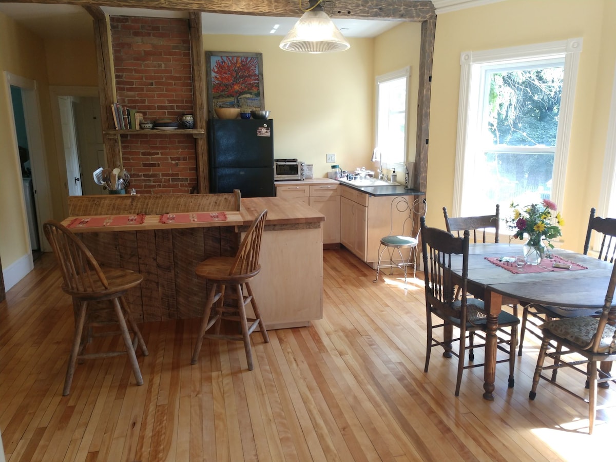 Rustic guest suite on serene four acres. Abutting colonial cape style house and West Lebanon Historic District date back to early 18th Century. Private parking & entrance, queen memory foam mattress, steam sauna, kitchen and laundry supplies, and desk and high speed wifi for telework. Minutes from Skydive New England, Prospect Hill Winery or McDougal Orchard. 30min to Portsmouth NH, Maine beaches, and Lake Winnipesaukee. Just over an hour to the White Mountains, Portland ME or the Boston area.