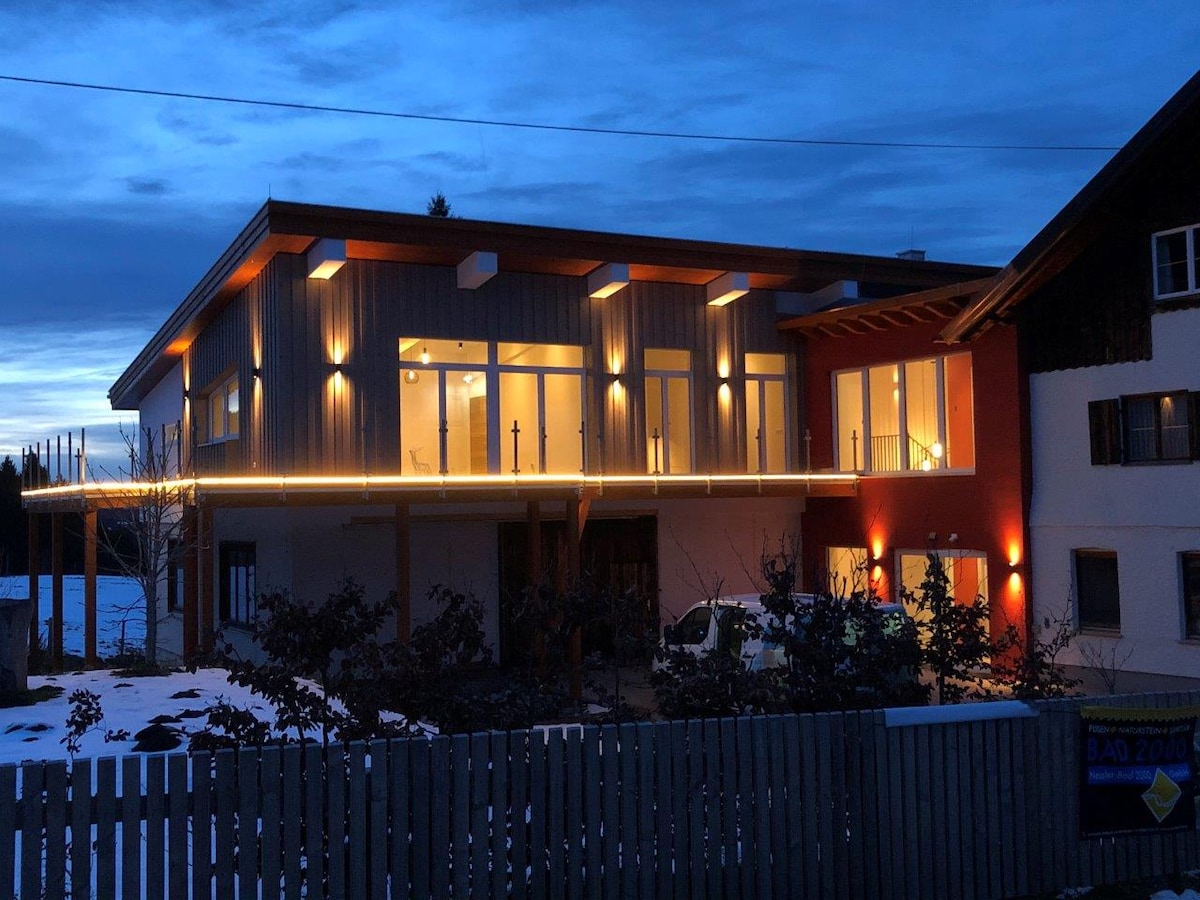Wir bieten ein ganz besonderes Holz-Haus mit Fass-Sauna direkt am Tor zum Allgäu. Zentral gelegen, um zahlreiche Ausflüge zu unternehmen oder einfach ein paar schöne Tage in einem nachhaltig gebauten und eingerichteten Haus zu verbringen. Hier bleiben keine Wünsche offen! Top ausgestattete Bulthaup Küche, großer massiver Eichenholztisch im Zentrum. Auf der Terrasse wartet ein Holzkohle-Grill darauf, befeuert zu werden und im großen Garten lassen Trampolin, Feuerstelle die Herzen höher schlagen.