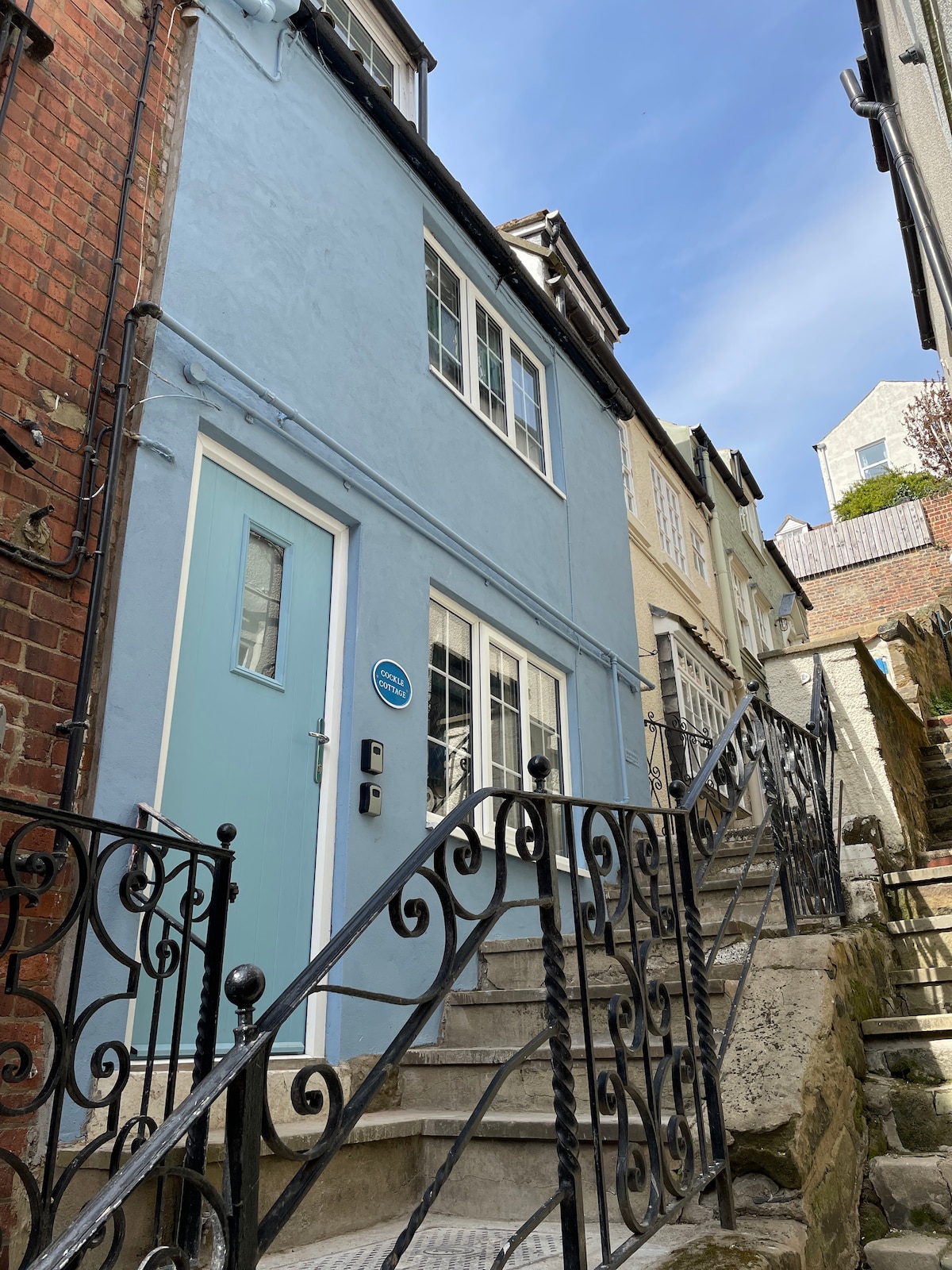 No. 3 is a stylish one-bedroomed bijou cottage, perfect for a short break. Situated on a narrow cobbled street just a yards off a main shopping street, there is Free nearby parking (scratchcard provided). See Whitby Abbey from the front door and the cliff top from the end of the road. Shop around the corner for milk, bread, newspaper or wine. Stylish cafes, restaurants, & micro brewery a few minutes away. Free wifi, Smart TV, Bluetooth speaker, spacious en-suite and rainforest shower.
