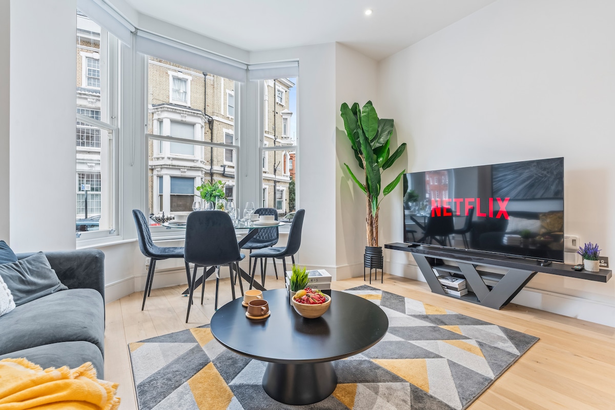 Nos complace ofrecerte este departamento compacto y acogedor de 1 dormitorio, a solo 2 minutos a pie de la entrada OESTE de la estación de Earl's Court. Recientemente renovado en todo, el departamento es luminoso, elegante y cuidadosamente diseñado. Cuenta con un dormitorio doble, sofá cama (a pedido), sala de estar y cocina abiertas, baño moderno con bañera y todas las comodidades. Ideal para viajes de negocios, escapadas urbanas y visitas más largas, con acceso rápido desde Heathrow y las principales atracciones de Londres.