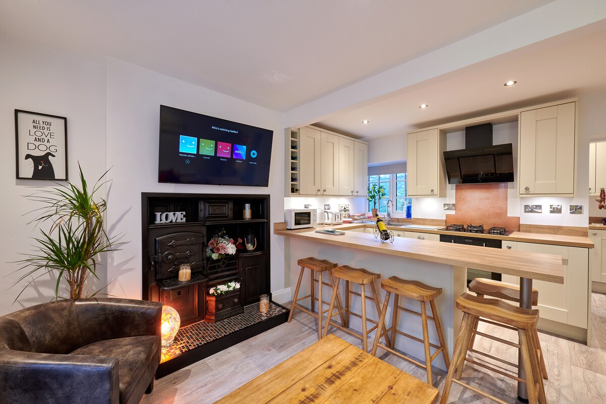Viaja al pasado y disfruta de una estancia en el tranquilo e histórico pueblo de Port Sunlight. Esta original casa de fachada en blanco y negro, clasificada como grado 2, con sus espectaculares chimeneas retorcidas de cebada, cuenta con todas las comodidades modernas que necesitas para disfrutar de una estancia relajante. La casa es la base perfecta para explorar los alrededores de Wirral, Liverpool, Chester y el norte de Gales y está a pocos pasos de la estación de tren de Port Sunlight, el teatro Gladstone, una pintoresca cafetería, el pub local y restaurantes cercanos.