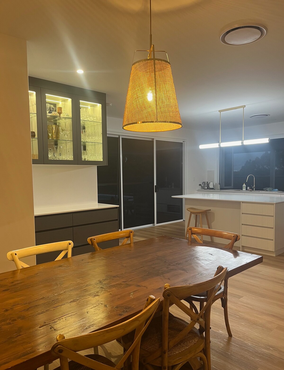 Toda la familia va a disfrutar de tu tiempo libre. Nuestra espaciosa casa de un solo un piso, de nueva construcción, de 1300 metros cuadrados está lista para vos y tus seres queridos. Esta casa familiar de buen gusto tiene 3 dormitorios que consisten en 3 camas queen, área polivalente con 2 camas individuales, 2 baños, sala de estar abierta con acceso directo a las áreas de descanso y comedor al aire libre, sala de estar, lavadero ventilado, garaje seguro para 2 autos, pileta, todo bajo 370 metros cuadrados de techo. Pueden dormir cómodamente 8 personas y hay espacio para colgar bolsas de dormir.
