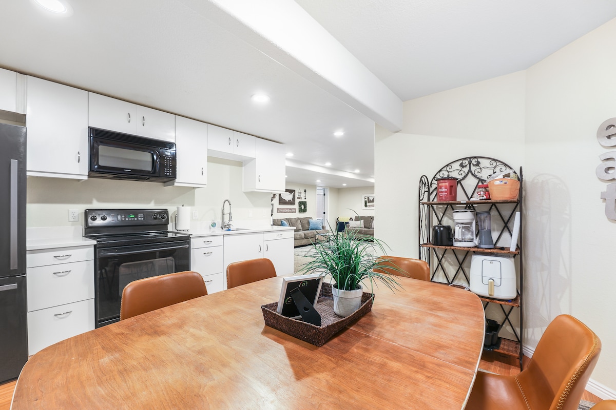 Vive como un local en esta espaciosa suite de 3 dormitorios con entrada privada, internet rápido, cocina totalmente surtida, lavandería, TV inteligente de 70", cargador EV y estacionamiento fuera de la calle. Ideal para familias, grupos o trabajo remoto. ¡Un montón de reseñas increíbles y a solo 20 minutos del aeropuerto de SLC! La suite se encuentra en un tranquilo callejón sin salida que está a pocos minutos de senderos, centros de esquí, tiendas y el centro de SLC. Ideal para familias, con espacio de trabajo y comodidad para todos los huéspedes: ¡disfrutá de la comodidad, la aventura y una estadía que vas a recordar!