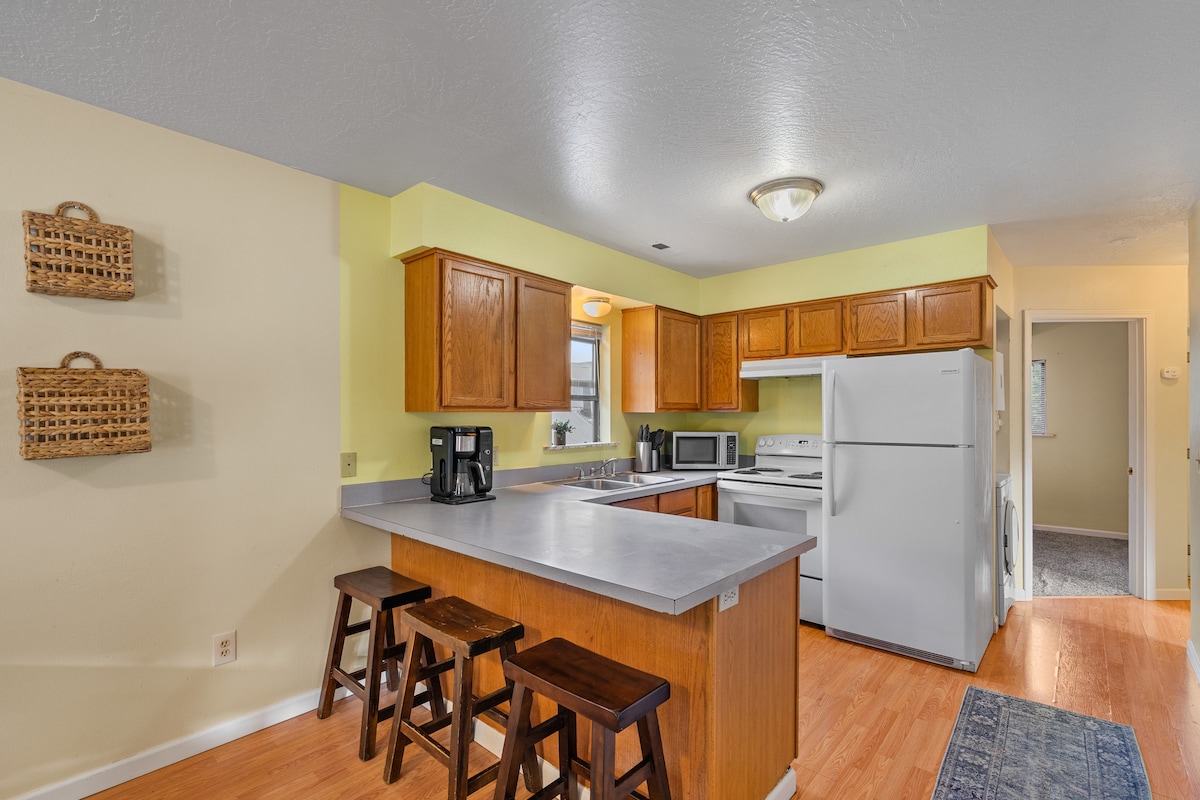 ¡Te damos la bienvenida a tu tranquilo retiro en Bozeman, Montana! Este luminoso departamento de 800 pies cuadrados es el punto de partida perfecto para tus aventuras en Bozeman. El espacio combina la comodidad moderna con muebles vintage y de origen local, creando un ambiente cálido y acogedor. Relájate en tu terraza privada con vistas a la montaña o disfruta de una noche acogedora junto a la chimenea de gas.