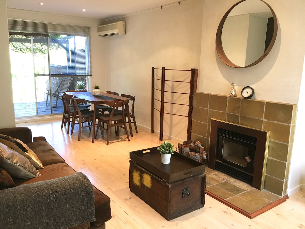 Apartamento de un dormitorio lleno de luz y lujosamente decorado, ubicado entre los viñedos de Pialligo en 5 acres. Este apartamento tiene vistas a Parliament House y está a solo 8 minutos en coche de la ciudad de Canberra y a 3 minutos en coche del aeropuerto. A pocos pasos del Rodneys Nursery Cafe, Beltana Farm, Tulips Cafe o Vibe Hotel, todos ofrecen deliciosos productos locales y cocina de cinco estrellas. Sabores del campo en la ciudad. Bellamente amueblado en todas partes, incluyendo chimenea de gas, TV inteligente, wifi y cocina totalmente equipada con horno Miele, cafetera, microondas, hervidor de agua, tostadora y nevera de tamaño completo. Los huéspedes serán recibidos con queso, galletas, vino tinto, blanco y espumoso, pan, leche, galletas dulces, cereales, huevos recién puestos de nuestras gallinas de corral gratuitas (Maggie, Beer y Oprah) y cualquier té que tu corazón desee. El baño de dos vías incluye champú MOR, acondicionador, gel de baño, loción corporal y jabón. Para aquellos que puedan haber olvidado algunos elementos esenciales, hay enjuague bucal, cepillo de dientes, pasta de dientes, gorro de ducha, kit de viaje (con artículos de costura) e incluso un kit de afeitado.