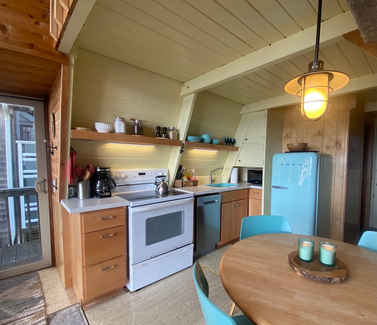 ¡Ponte cómodo frente a la chimenea de leña mientras disfrutas de vistas despejadas del océano Pacífico! Lugar ideal para ver tormentas de invierno. Esta estructura alpina de mediados de siglo está situada en una ladera a solo 2 cuadras sobre Oceanside Village y la playa. Una escapada típica de Oregón... casi rústica con todas las comodidades adecuadas para las criaturas. #851-10-1848-STVR