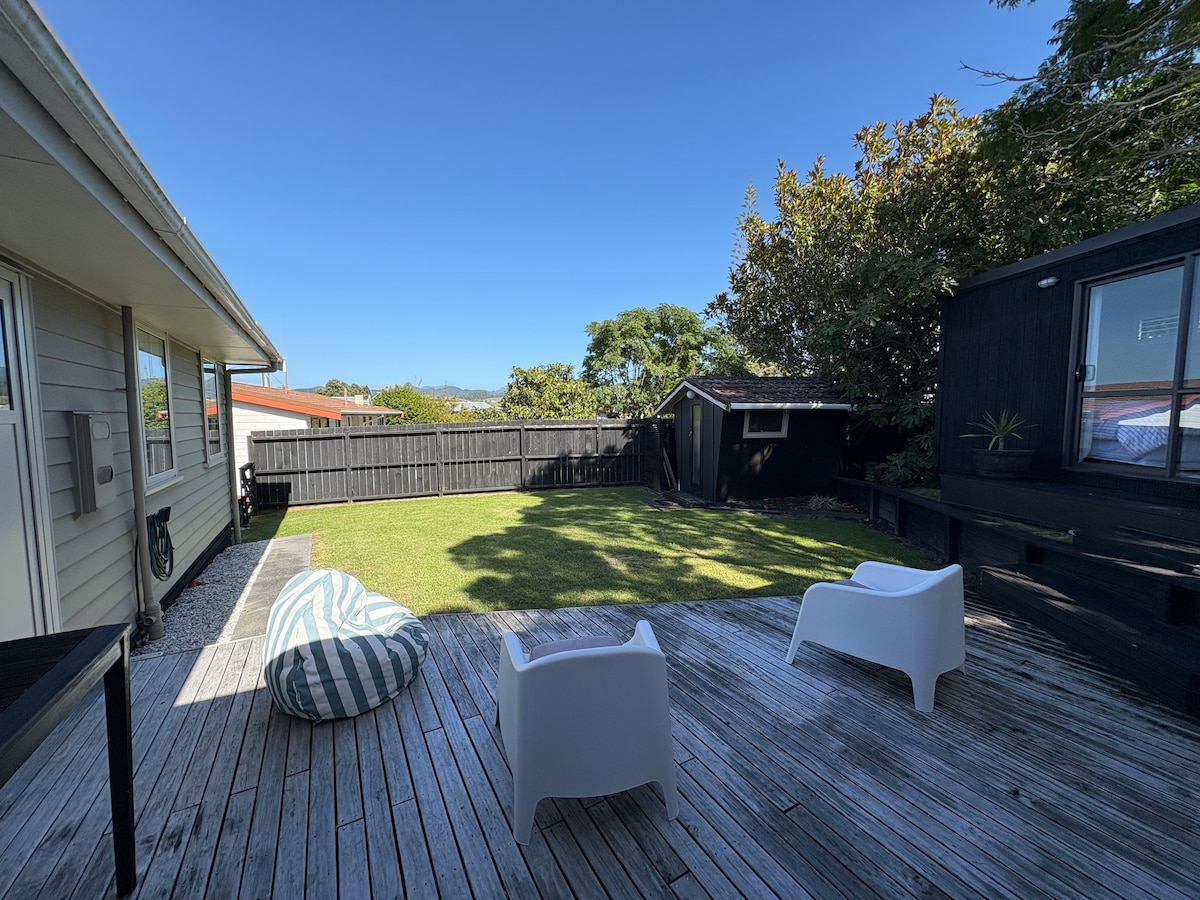 Ubicada en 10 acres de arbusto y a solo 7 minutos en coche de las tiendas y la playa de Pauanui, nuestra casa es perfecta para unas vacaciones familiares o una escapada idílica para parejas. Conecta con la naturaleza en los jardines nativos o disfruta de total relajación y privacidad en la enorme terraza. Sumergite en el jacuzzi y contemplá las estrellas por la noche. En invierno, encendé el fuego para disfrutar de un refugio cálido y acogedor. O puedes recorrer la carretera para acceder al sendero para bicicletas hacia Pauanui.