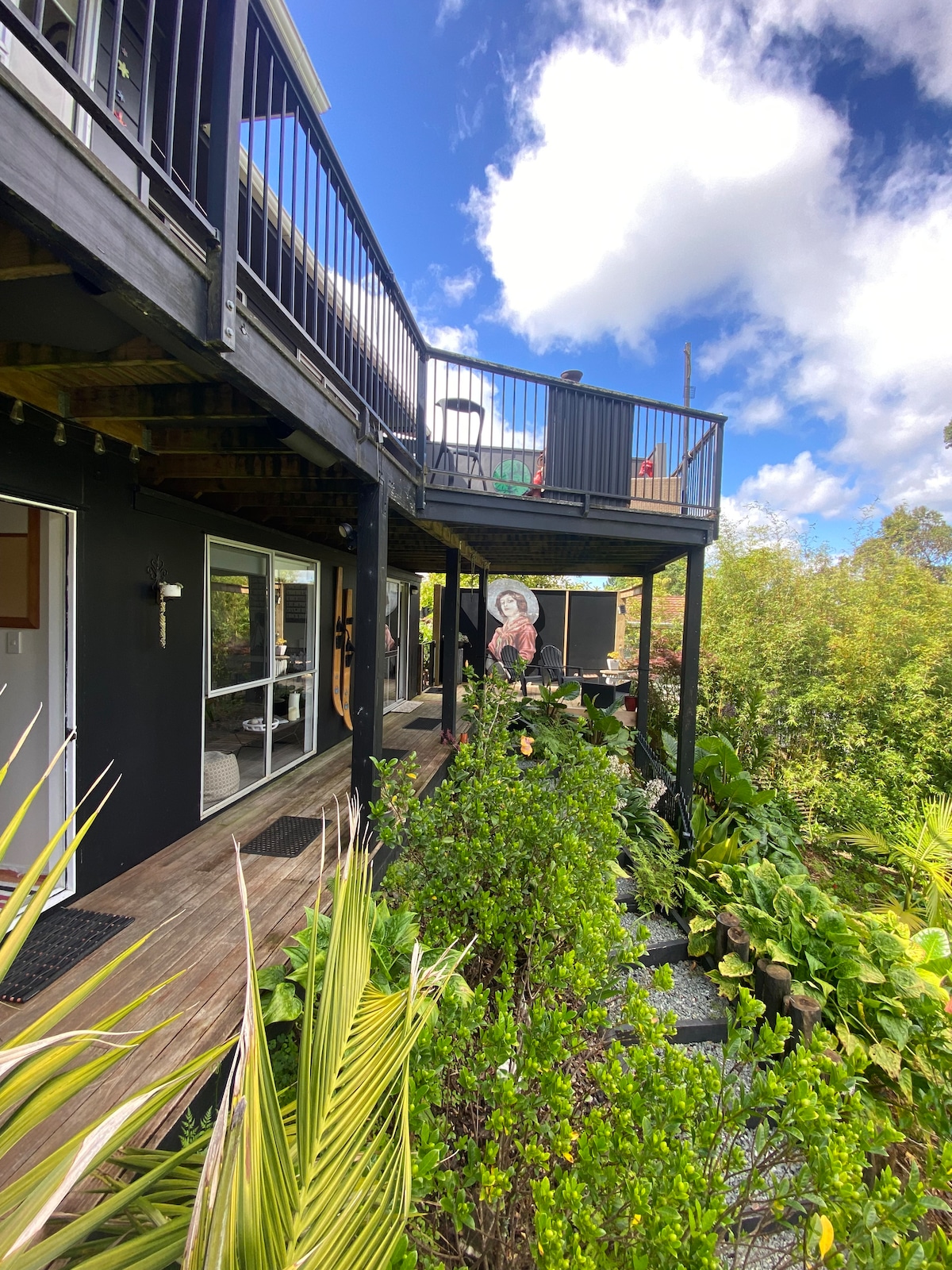 El anexo está en una pequeña granja, a 6 km al sur de Whangarei, con vistas al puerto. Era un dormitorio independiente, construido en la década de 1980, separado, pero junto a la casa principal. Tiene dos dormitorios. Hay una cama doble y dos individuales más un sofá cama en la sala de estar. La sala de estar/comedor tiene una chimenea de leña. Hay un pequeño cuarto de ducha y un aseo separado. Está situado a unos 100 metros de la SH1, por lo que puede haber ruido de la carretera. No hay farolas y puede ser muy oscuro si llegas después del atardecer.