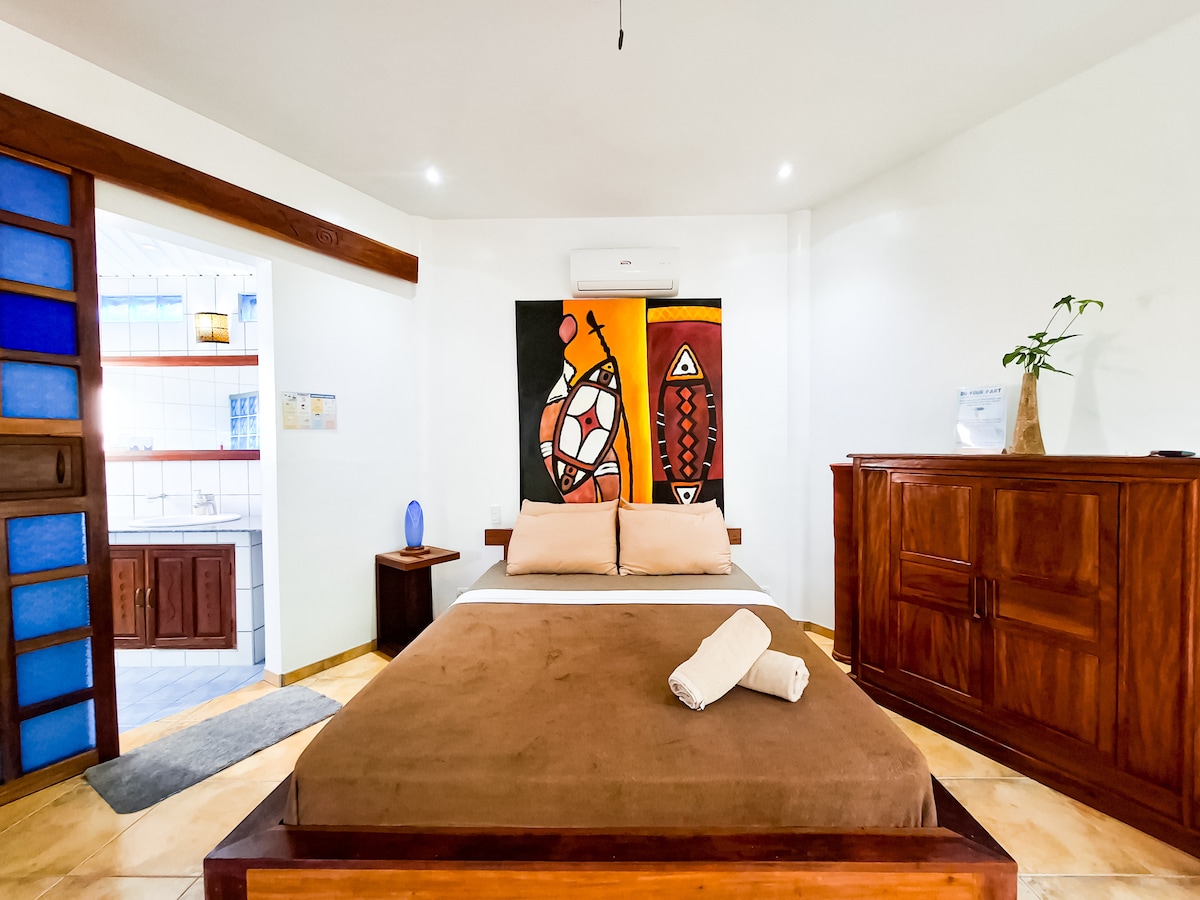 La luminosa habitación con terraza tiene vistas a un jardín tropical. Puedes disfrutar del océano y el horizonte con la puesta de sol desde nuestra terraza en la azotea del jardín con una cena romántica. Las playas vírgenes están a pocos minutos de nuestra ubicación. La reservación incluye desayuno de cortesía. Nuestro chef prepara platos locales y cenas de mariscos bajo petición . Es posible que esperes una experiencia única en una isla en nuestra propiedad boutique sostenible con solo 9 habitaciones/apartamentos. Operamos un generador de respaldo.