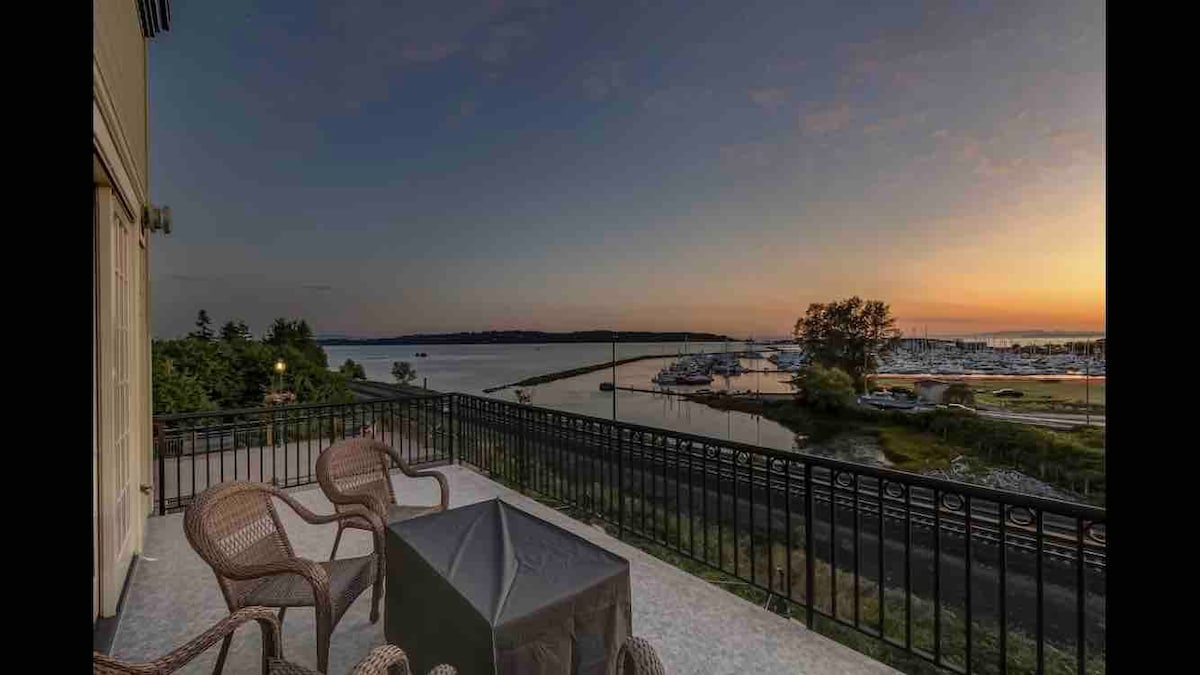 Suite legal de lujo de 2 dormitorios con vistas panorámicas al mar, las montañas y las islas del golfo. A dos manzanas a pie de la playa este. Una espectacular playa de arena y un paseo marítimo que te conecta con la playa de West y el famoso muelle de White Rock. Hay muchos restaurantes y bonitas tiendas pequeñas para disfrutar. A 5 minutos de la frontera de EE. UU. y del hospital Peace Arch. Transporte público a una manzana de distancia. Aparcamiento gratuito con permiso proporcionado. Entrada privada a una suite independiente en una casa residencial.