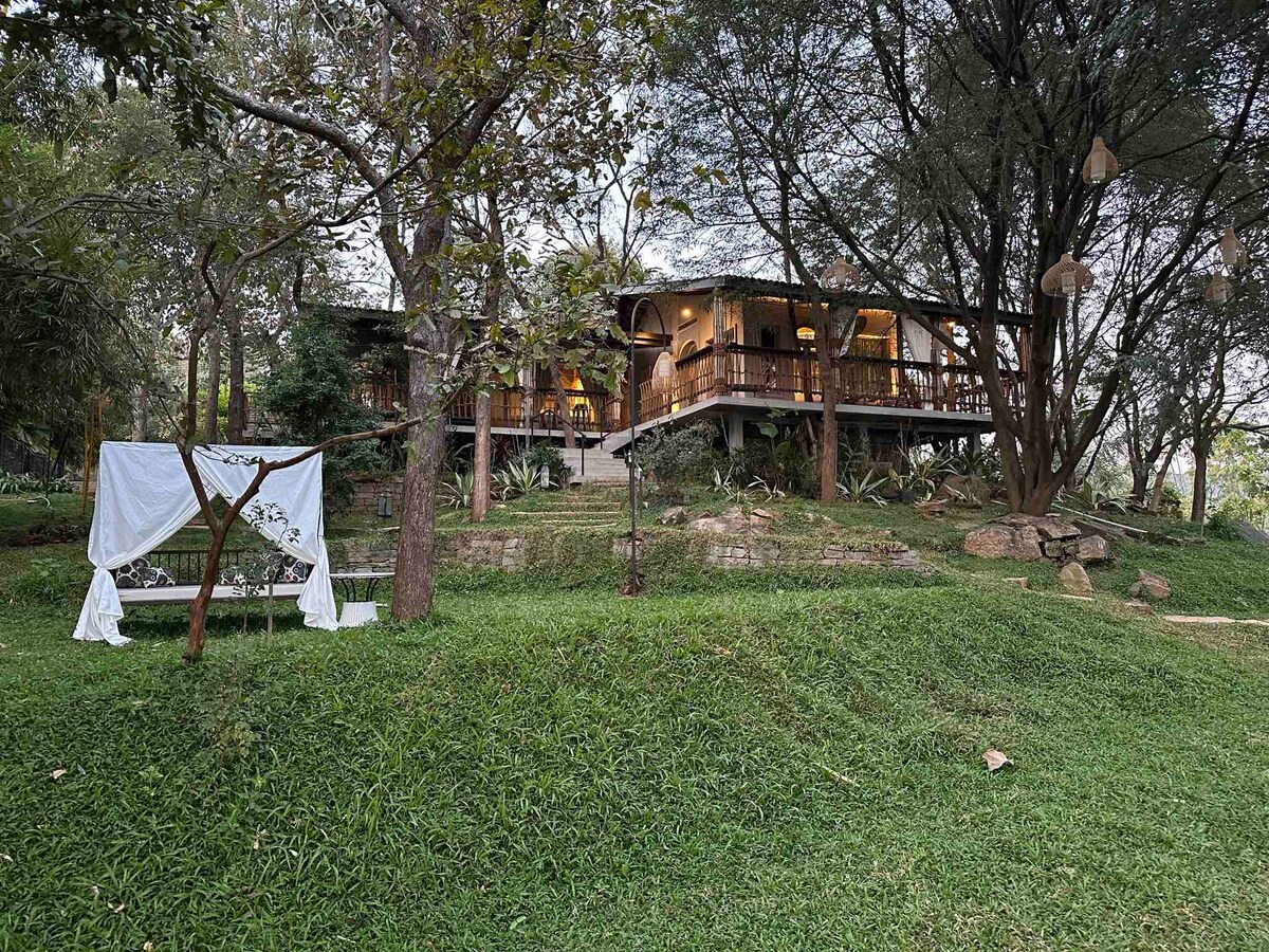 Escápate a nuestra comunidad cerrada de 36 acres con casas de campo privadas rodeadas de exuberante vegetación. Tu estancia incluye 1 habitación acogedora y aislada sin paredes compartidas para una total privacidad. Disfruta de la piscina, la observación de aves y los tranquilos paseos por la naturaleza. Disfruta de la auténtica cocina local hecha con ingredientes frescos. Nuestro alojamiento admite mascotas y tiene una piscina dedicada para tus amigos peludos. Ideal para un retiro tranquilo o eventos especiales como sesiones de fotos previas a la boda y sesiones de yoga. Ponte en contacto para reservaciones para grupos o eventos