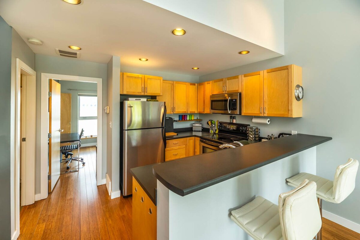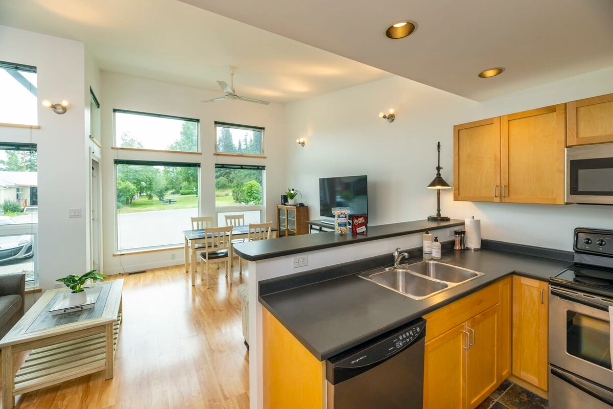 Este lujoso apartamento de 1 dormitorio y 1 baño de 65 metros cuadrados está situado en el centro de la ciudad, justo al lado del río Yukón y del parque Shipyards. Cerca de las cafeterías y bares más populares de Whitehorse, este apartamento es perfecto para profesionales y viajeros que deseen estar en una ubicación céntrica y de moda. El apartamento cuenta con un amplio balcón y una luminosa cocina de concepto abierto y sala de estar. El dormitorio tiene una cama tamaño queen con sábanas suaves y almohadas cómodas.