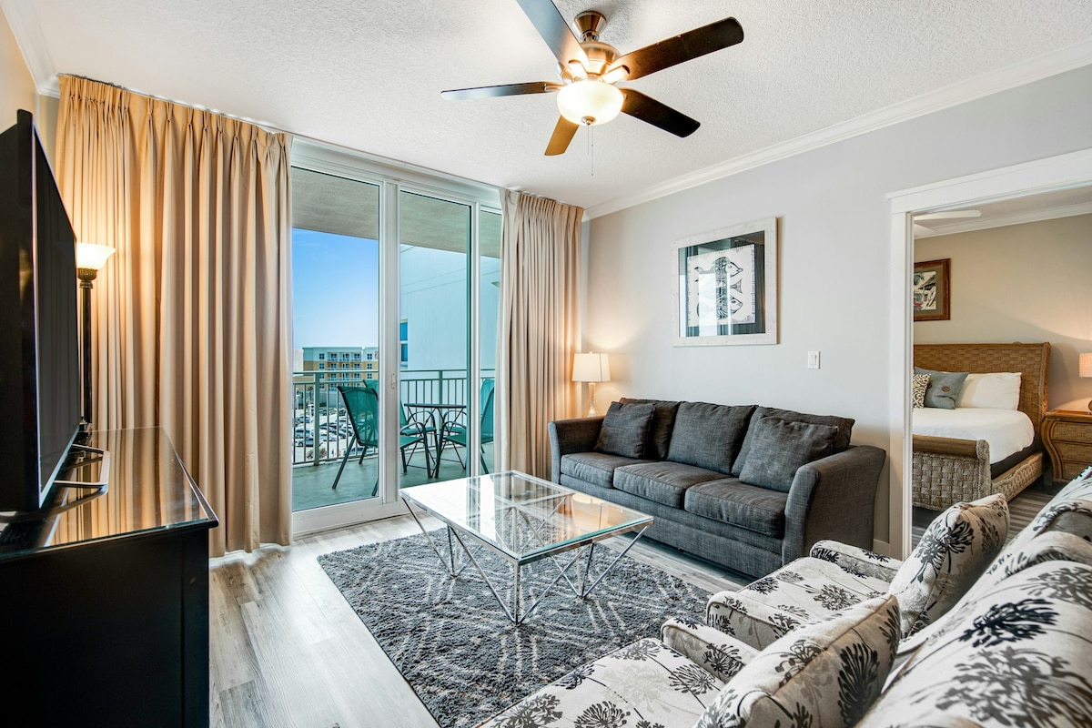 Disfruta de este lujoso apartamento de 3 dormitorios/2 baños de 1777 pies cuadrados apto para familias con una suite principal de lujo con jacuzzi y un gran balcón con vistas a la bahía de Choctawhatchee. ¡Camina hasta el muelle y come o regístrate para pescar, o alquila tus propias motos acuáticas o un pontón y dirígete a la isla Crab de Destin! En la planta baja se encuentra el Lazy River, la piscina con cascada, 2 piscinas climatizadas y 2 spas de chorros climatizados. Se requieren pulseras para esta área. Los huéspedes pueden utilizar el puente elevado para acceder a la playa, restaurantes y entretenimiento.