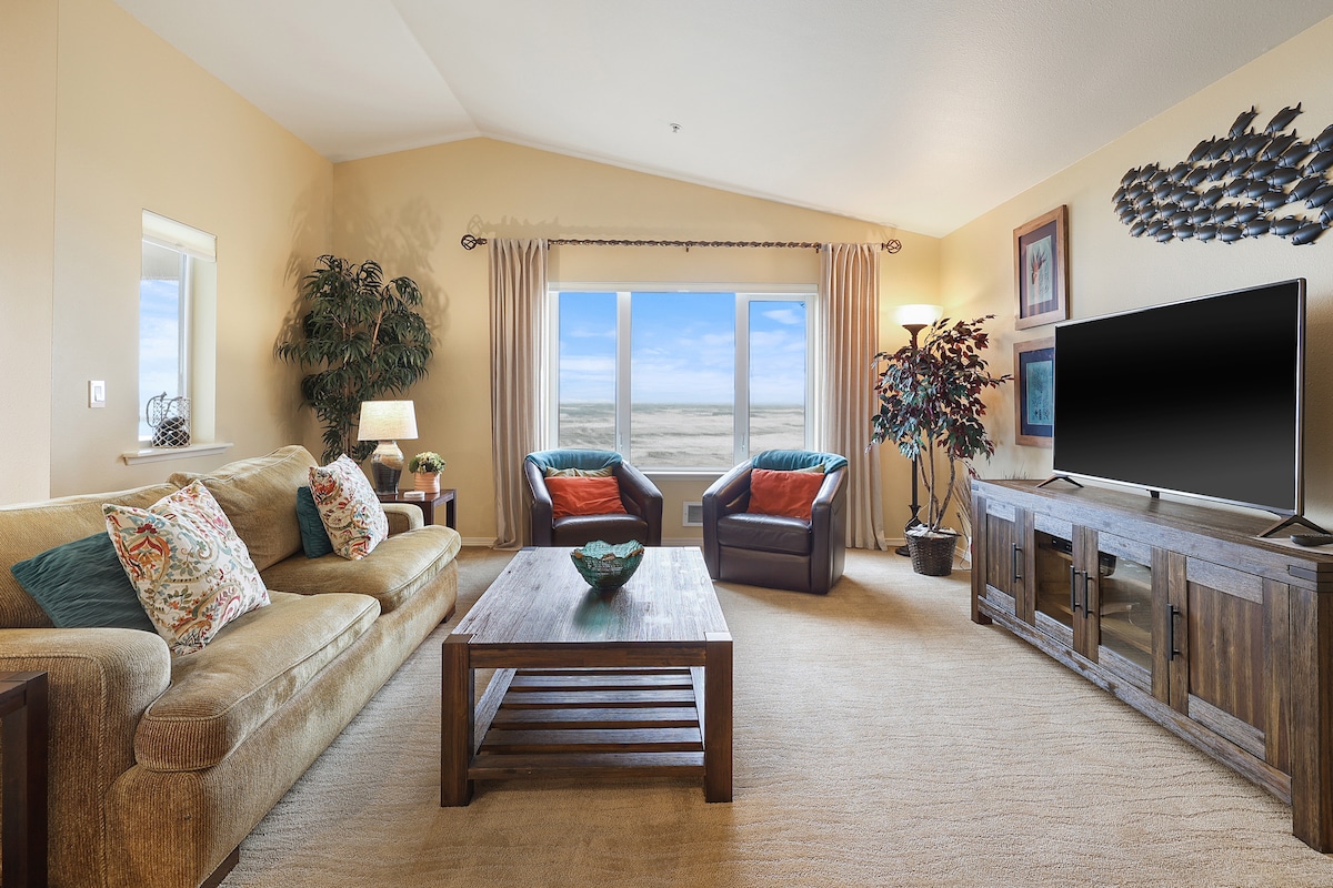 Relájate con tus amigos o familiares en este condominio tranquilo de 2 dormitorios y 2 baños en Westport, WA, con vistas al mar. Tiene capacidad para 6 personas con 5 camas en total (1 king, 2 juegos de literas individuales). También hay un Pack 'n Play si es necesario. Sofá muy cómodo frente a la chimenea con vistas a las olas rompiendo. La entrada a la playa se encuentra en el Westport Light State Park, a solo 1/4 de milla a pie/en coche. También está a pocos pasos del faro Grays Harbor y a menos de 10 minutos del puerto deportivo.