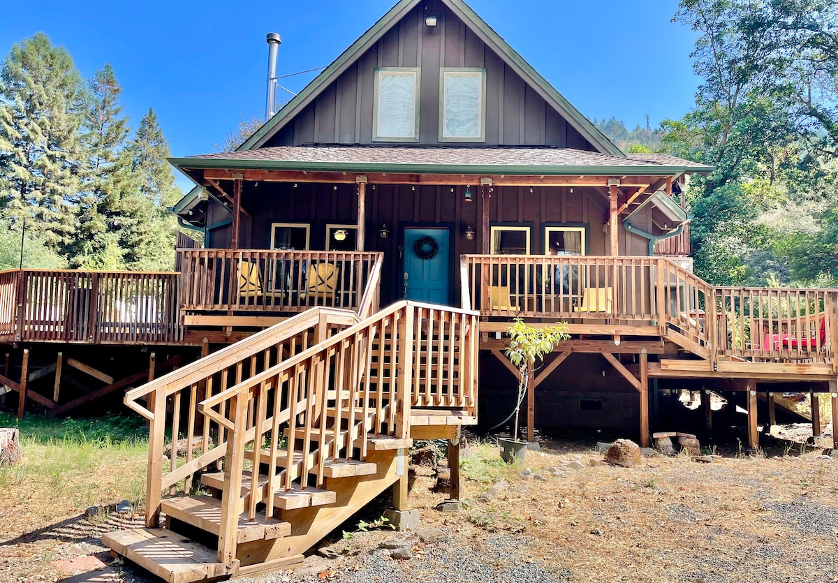 This private two-bedroom one bath home located in sunny Blue Lake is a great base for day trips to the Redwood National Parks, ocean, and beautiful hiking trails. The bedrooms have comfortable queen-size beds, and the spacious bathroom features double sinks. The house also boasts a hot tub on the back patio and the large front porch is perfect for enjoying a cup of coffee in the morning or a glass of wine in the evening.