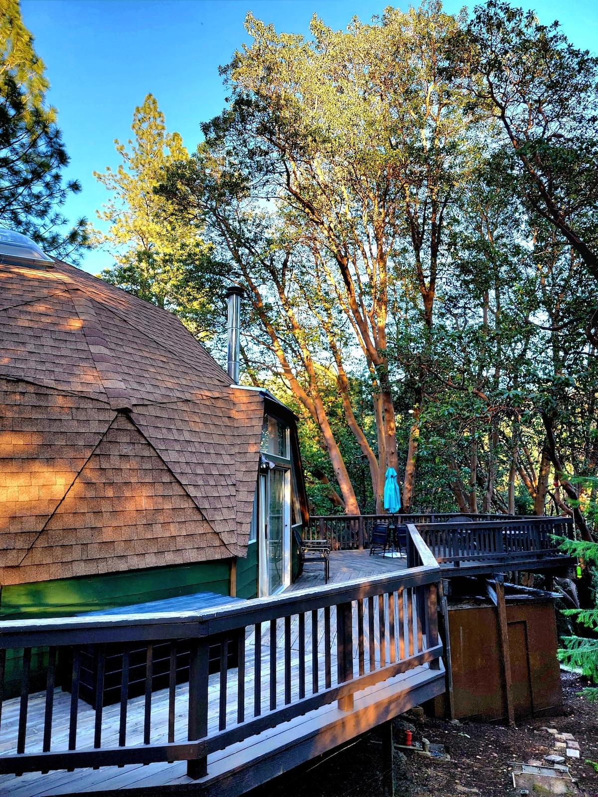 Cúpula mágica única enclavada en una arboleda de madrones. Un refugio tranquilo y relajante en Pioneer, California, justo al lado de la pintoresca autopista 88, a 39 millas de la estación de esquí Kirkwood, a 15 minutos del Jackson Rancheria Casino. Disfruta explorando las montañas circundantes, los lagos cercanos, las bodegas y las pintorescas ciudades Gold Country como Sutter Creek, Jackson, Volcano y Amador City.