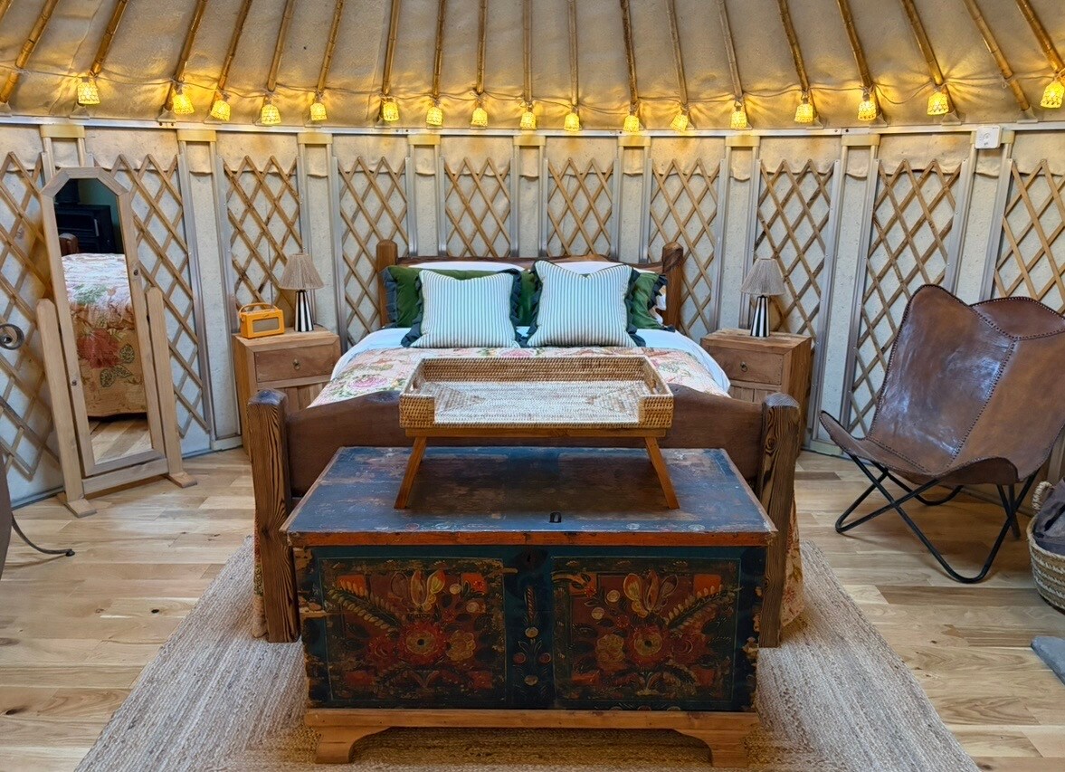 Escape to our glamping cabin nestled in the Cotswold countryside. Offering a perfect blend of comfort and natural beauty this self-contained pod gprovides a quiet retreat for two. • King-size bed with natural sheep’s wool duvet and feather pillows • Private, fenced outdoor space • Pre-heated Wood-fired hot tub and wood fired sauna included the price • Cozy Geodome • Kadia fire bowl • Gas-fired BBQ for outdoor cooking Wood fired sauna available as a separate booking.