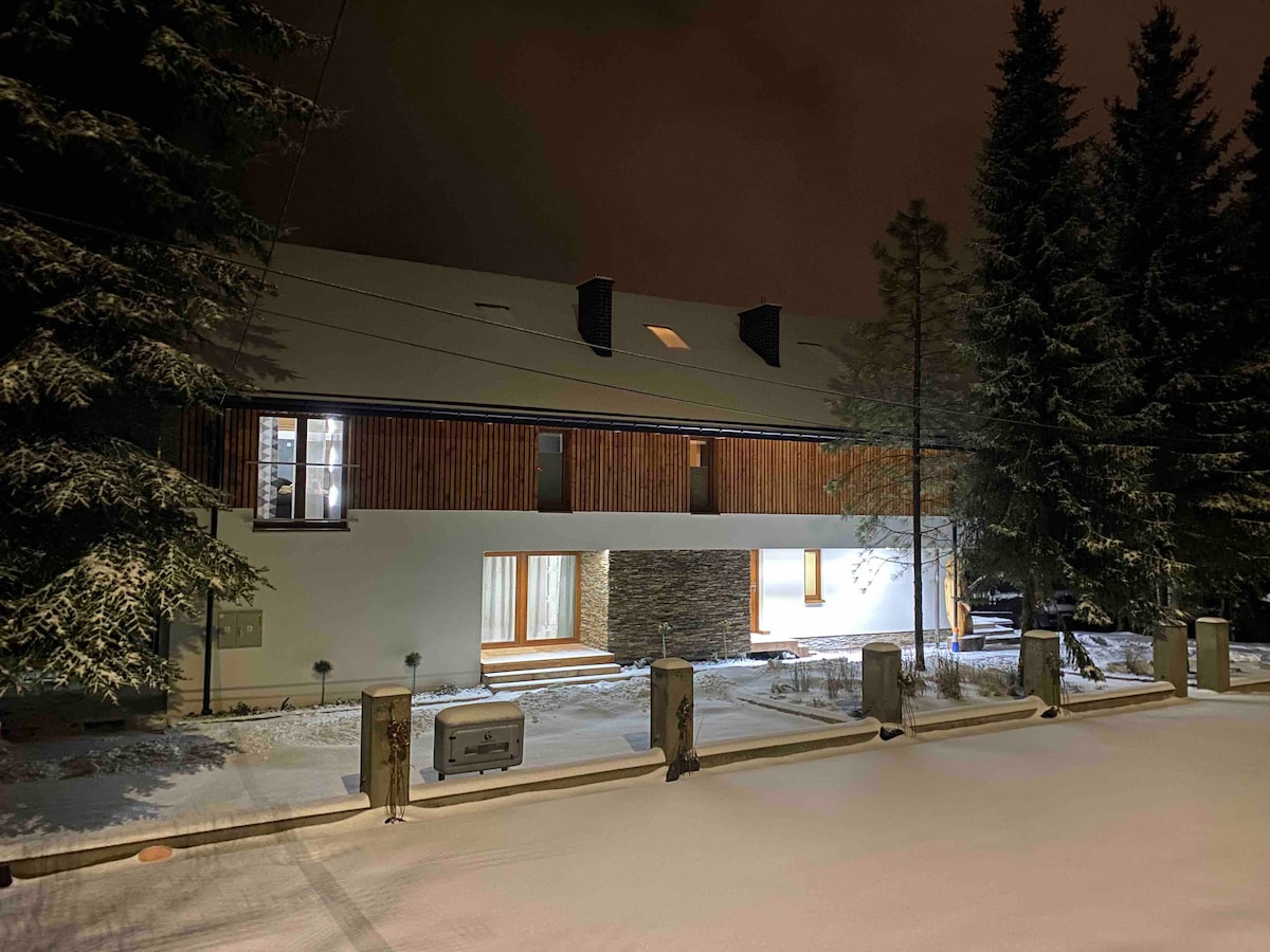 Un lugar perfecto para alojarse con la familia y los amigos. Perfecto para despedidas de soltero/a, cumpleaños. Balia, jacuzzi de leña - con cargo adicional. Para 6-10 personas. Se aceptan mascotas por un cargo adicional. Por favor, póngase en contacto con nosotros con antelación para acordar los detalles y el precio de la estancia de su mascota.