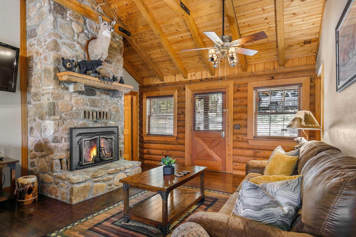 Ubicado en una arboleda de cedros con terraza PRIVADA con jacuzzi y arroyo burbujeante. Un hermoso entorno cerca de Silver Dollar City en un galardonado campo de golf en una comunidad cerrada. La PISCINA JUNTO AL LAGO, el voleibol de arena, el parque infantil, los senderos para caminar y mucho más están a solo 2 minutos a pie de la puerta principal. Las vacaciones de este año serán mágicas. Imagina despertarte en la cabaña de vacaciones perfecta en el bosque. Este será un viaje que tu familia nunca olvidará.