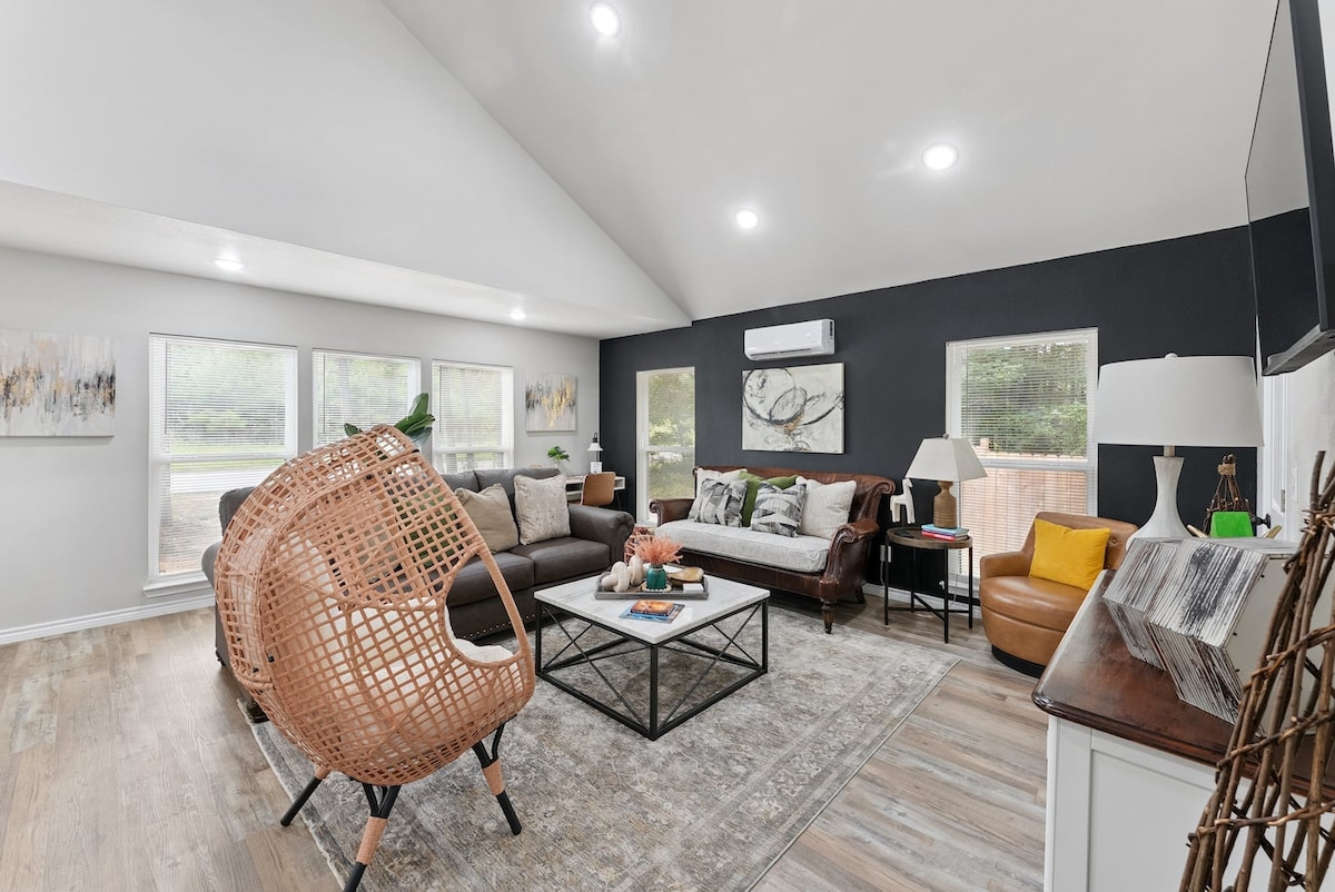 Magnolia Pines es una casa de estilo granja industrial ubicada dentro de la tranquila comunidad de jubilados cerrada de Holly Lake Ranch. Estamos aquí a menudo, por lo que nuestra casa tiene todo lo que necesitas para relajarte o aventurarte sin parar. La casa principal tiene capacidad para 6 personas en 2 dormitorios. Tenemos una litera separada ubicada sobre el garaje que se puede añadir a tu estancia. ¡Solo tienes que preguntar! Estamos a 1 minuto del lago, canchas de pickleball, piscina, rutas de senderismo, minigolf, parque infantil y golf de disco.