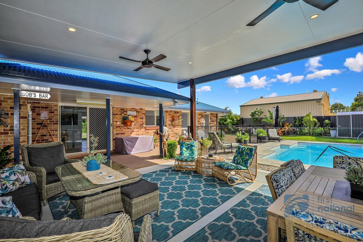 Woodgate is a small coastal town known for its beautiful long beach and relaxed vibe, perfect for couples or families who want a chilled, beach holiday. Set in a quiet cul-de-sac, this spacious home is just a 10-minute walk to Woodgate beach (approx. 800 m) - perfect for a relaxed, easy coastal getaway. The house feels like home, with plenty of room for everyone: four bedrooms, two bathrooms, two living areas, and a covered outdoor patio where you can unwind after a day at the beach.