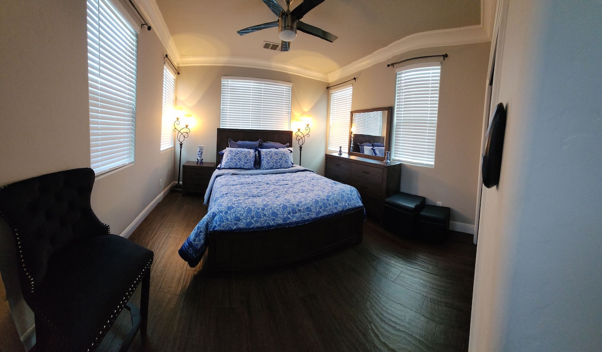 Welcome to our brand-new community! This place is quiet and very safe, conveniently located near Fresno Yosemite International Airport.And between Yosemite & Sequoia and Kings Canyon around 1 hour.We offer a private suite with full furnishings, including a King Size bed and an oversized desk.The layout features a living room, bedroom, and bathroom, with a private entrance, a small kitchen, and a private bathroom. Additionally, we have a full-size Japanese-style tatami mat available for your use.
