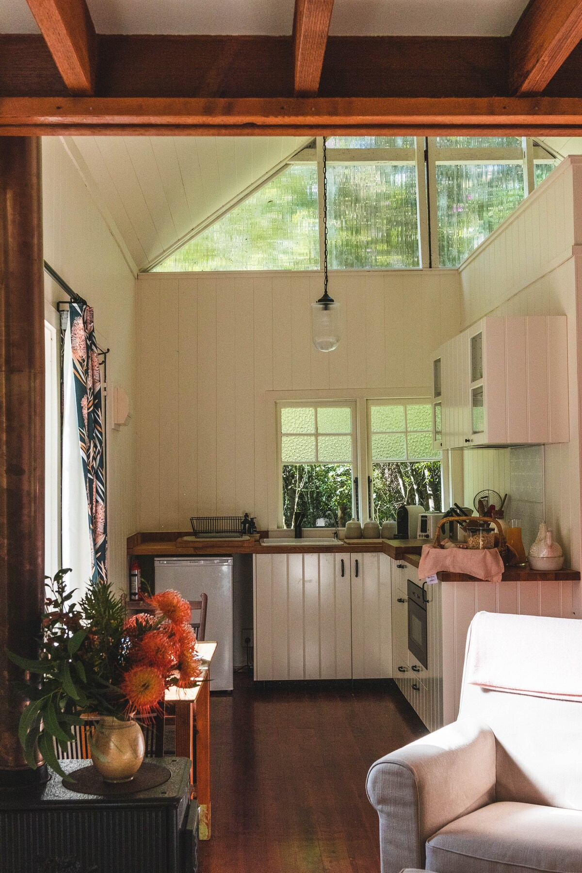 Descansa y relájate en Orana Home | Bienvenido a casa Esta tranquila cabaña tiene todo lo que necesitas para una escapada idílica en la costa sur. Disfruta de la tranquilidad que conlleva despertarte con el canto de los pájaros, contemplar a los nativos a través de los tragaluces, disfrutar de un baño en playas de fama mundial y acurrucarte frente a la chimenea... Orana Home es un lugar para que te relajes y recargues las pilas. Un minirretiro especialmente diseñado para pasar tiempo de calidad con aquellos que más importan, la escapada romántica perfecta.