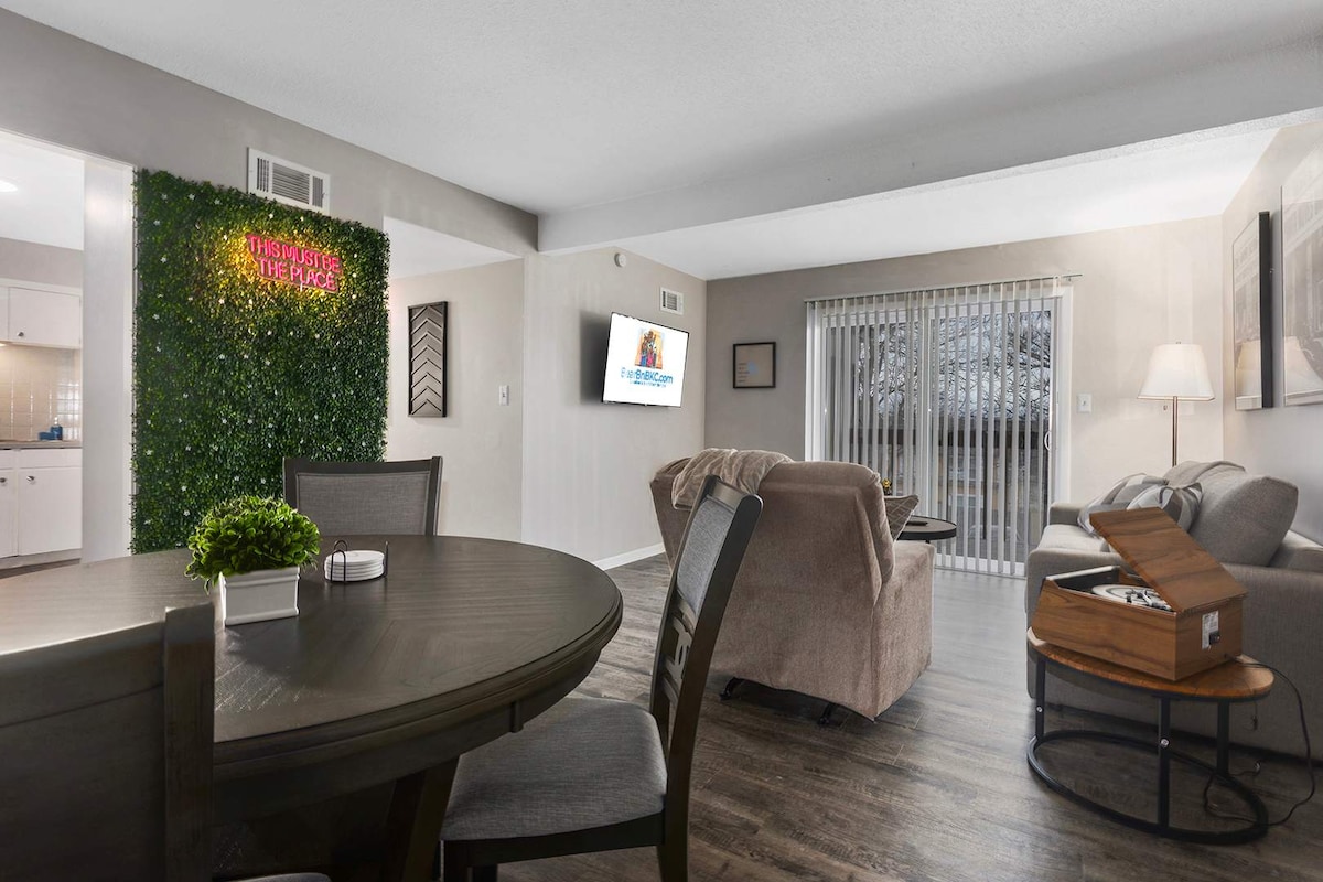 ¡Ven a alojarte en este moderno y elegante apartamento de 3 dormitorios cerca del centro de Kansas City! ¡Disfruta de las vistas de la nueva KC Wheel desde la azotea! Este apartamento tiene 1 dormitorio y 1 baño junto con la sala de estar, comedor y cocina en el nivel principal, 2 dormitorios adicionales, el segundo baño, lavandería y espacio de trabajo dedicado están en el segundo nivel del apartamento. Hay estacionamiento gratuito en el estacionamiento del edificio.