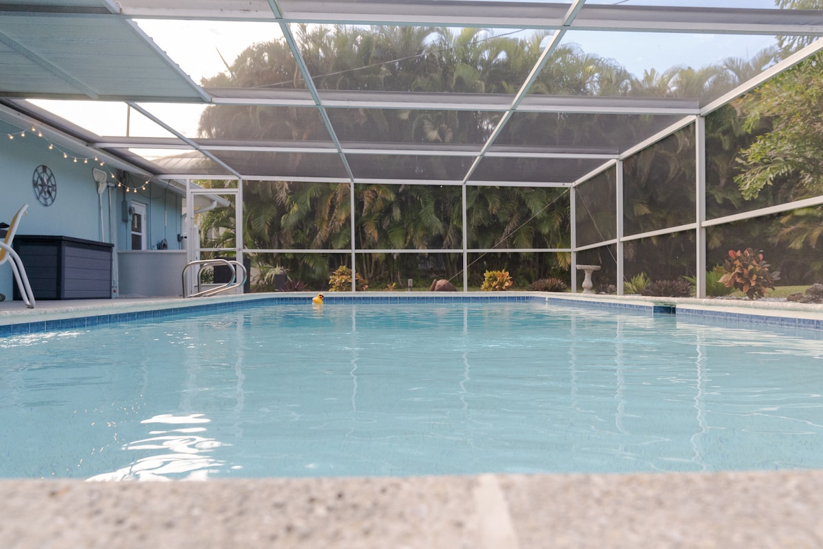 Escápate a este oasis de 5 dormitorios y 3 baños en el sistema de canales de Cape Coral, a pocos minutos en barco del golfo de México. Relájate en la piscina de agua salada cubierta de lanai y en el jacuzzi, rodeado de paisajes tropicales. Perfecta para familias, mascotas y viajes de negocios, la casa cuenta con una cocina espaciosa, varios televisores, TV por cable y vistas al agua. A solo 5 minutos de las playas, a 10 minutos de restaurantes y tiendas y a 35 minutos del aeropuerto de Fort Myers, ¡tu mejor escapada a Florida te espera! ¡Política de cancelación moderada y sin gastos de limpieza!