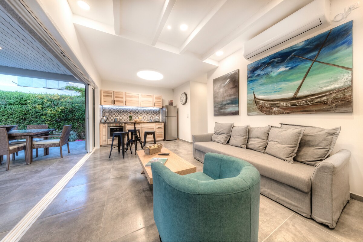 Nuestra casa es una casa de campo dulce y elegante con un hermoso jardín, que da los mejores mangos y muchas otras frutas La casa es espaciosa, totalmente equipada para tu comodidad, con una cocina increíble y agradables áreas de estar dentro y fuera Se encuentra en una calle tranquila Se encuentra a 2 km de una playa impresionante, a 2 km de la vida nocturna y la zona de restaurantes (de gama alta a informal), cerca del transporte público, tren (a 10 km de Tel Aviv) y centro comercial y centros comerciales st. A parejas, familias, amigos y hombres de negocios les encantaría