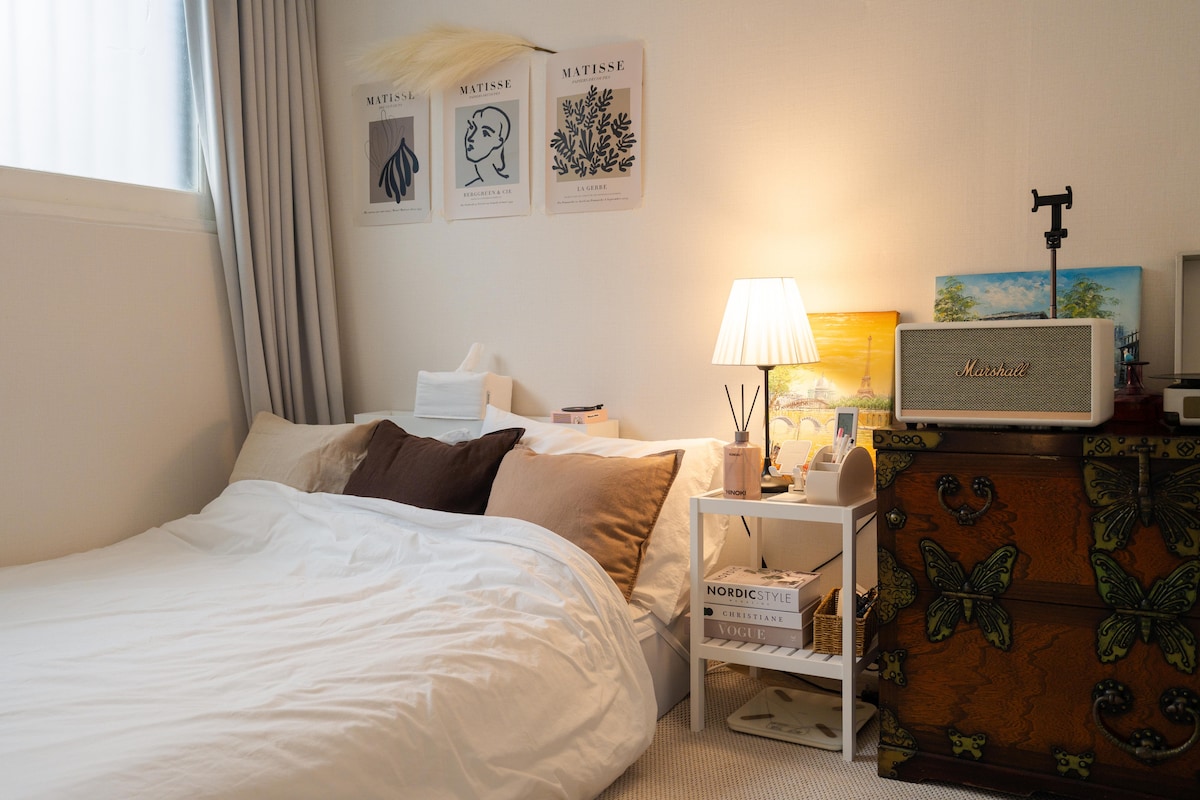Starfall Stay es un alojamiento sensacional en Airbnb ubicado en la zona de la estación de Nakseongdae. Podés disfrutar de películas y música con un proyector y parlantes Marshall en un ambiente cálido y acogedor. En las cercanías, hay Sharosu-gil, mercados, Starbucks, minimercados, restaurantes de gimbap las 24 horas y transporte conveniente a las principales atracciones turísticas como Myeongdong, Hongdae, Seongsu e Insadong. También está cerca de paradas de autobús del aeropuerto, restaurantes y cafés, por lo que cuenta con un servicio acogedor y amable y la comodidad de un hogar lejos de casa para los viajeros.