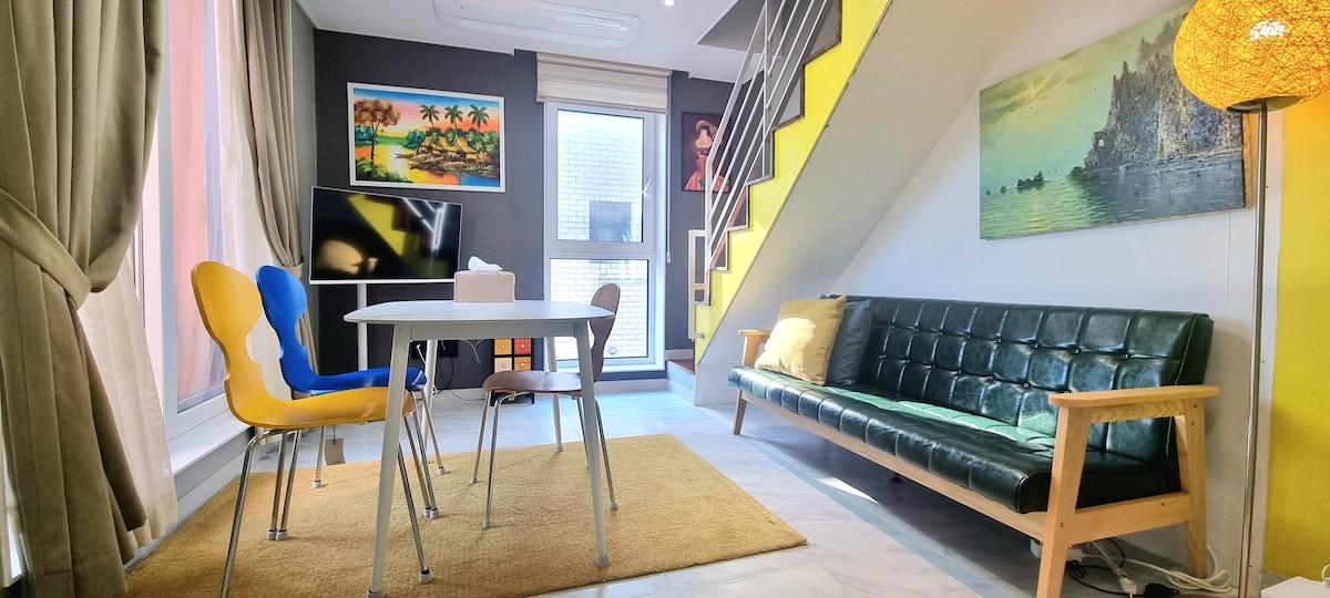El anfitrión, que valora la limpieza y la limpieza, lo gestiona directamente:) Limpieza de la empresa x Un equipo, un equipo de limpieza de vapor, esperándote. Cálida luz del sol, sensación de Instagram♡ La encantadora Lullullala House, que tiene hasta un patio, tiene 2 alojamientos. La habitación roja que está viendo ahora tiene una decoración blanca en forma de arco. No hay lugar que no sea bonito, desde el dormitorio hasta la cocina y el baño. ¡El interior del baño es de ciprés! Es igual que en la foto♥ Tenemos una máquina de café Nescafe Dolce Gusto ¡Relájate con una deliciosa taza de café! La habitación azul de dos pisos también es bonita. Por favor, confirme pulsando la imagen del anfitrión Sunah < ^ ^ Viking, Disco, Wolmido Cultural Street dentro de 5 minutos a pie!!!!! Puerta roja: amplio interior de arco en el primer piso Puerta azul: interior de dos pisos