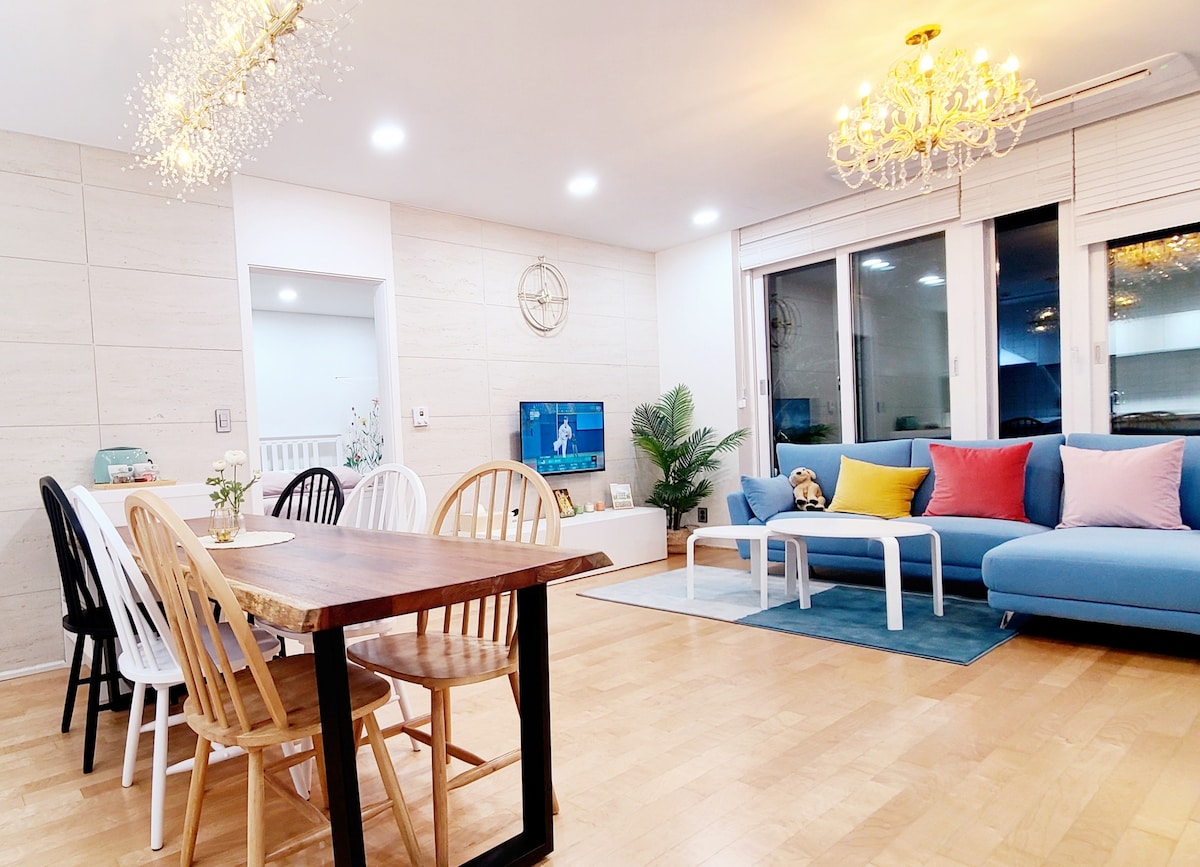 Experimente un descanso completo en Jeju en un amplio espacio de dos pisos construido en la playa de Samyang, cerca del centro de Jeju. Es un buen lugar para divertirse con los niños, ya que está cerca de la playa Samyang Black Sand, que es un paraíso del surf, y el parque acuático Yongcheonsu, Shandori Mul. Además, hay muchas instalaciones, cafés y restaurantes en los alrededores, por lo que es un alojamiento conveniente para viajes de negocios o viajes de golf. En especial, si vienes a Jeju para un viaje de golf, ponte en contacto con nosotros con antelación y te reservaremos un campo de golf maravilloso a un precio de residente de Jeju o recomendado por el personal. * Hay un sauna de mar cerca de la propiedad. ^^ Si tiene previsto utilizarlo con antelación, por favor, comuníquenoslo. Le daremos un billete gratis. El espacio que ocupan los huéspedes es todo el segundo piso. Al entrar, dirás "¡Guau! ¡Es más espacioso que en la foto!" Las palabras saldrán solas. Aunque solo han pasado unos pocos años desde que se construyó, la decoración es tan nueva que parece una casa completamente nueva.. Disfrute de Jeju en una espaciosa casa de dos pisos en la playa de Samyang. ^^