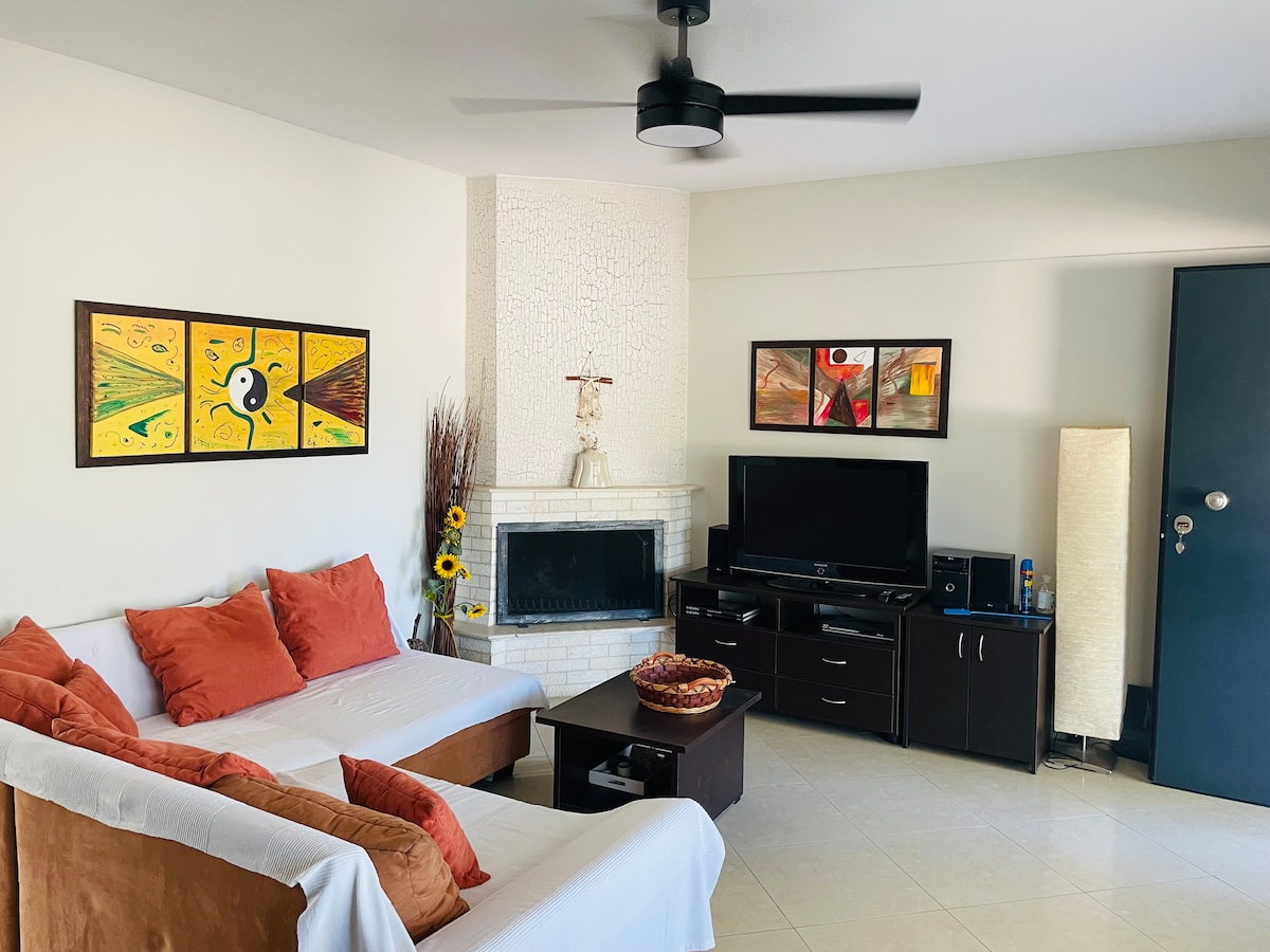 ¡Departamento moderno completamente renovado a solo unos pasos del mar! ¡Ubicado en la pierna de Sithonia, cerca de las playas más hermosas! El apartamento tiene dos dormitorios grandes, dos baños, una gran sala de estar y cocina. Las partes exteriores tienen dos áreas de estar con un hermoso jardín verde grande. ¡El apartamento es perfecto para unas vacaciones familiares! El apartamento forma parte de un bloque de apartamentos cerrado que tiene su propia playa privada, área de juego privada para niños y patio deportivo privado.