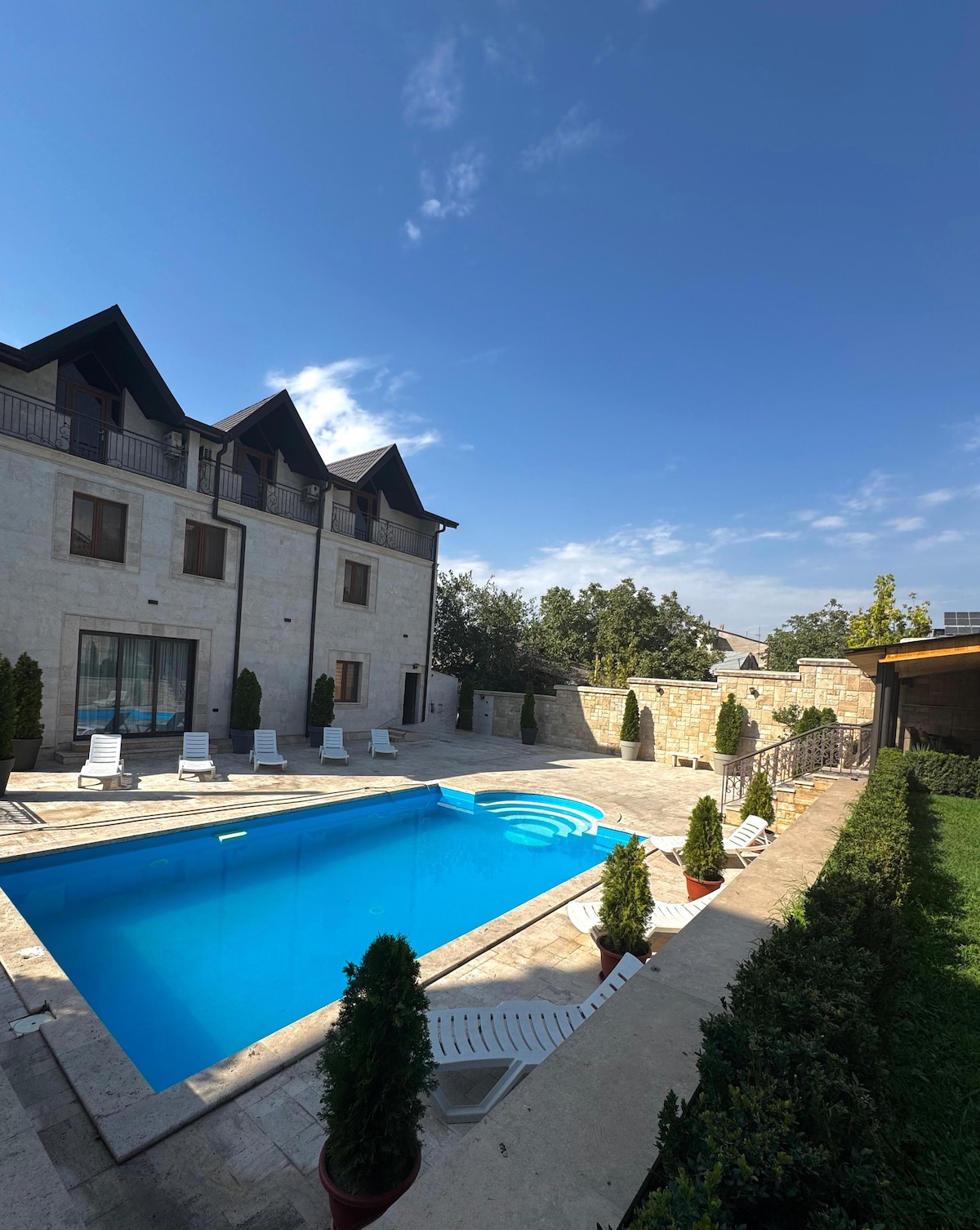 Villa De France is a newly renovated bed and breakfast in Yerevan, offering an outdoor pool, garden, terrace, and shared kitchen. Guests enjoy daily room service, free Wi-Fi, airport transfers, and car rental options. Some rooms have flat-screen TVs, and private bathrooms. On-site amenities include a café, barbecue facilities, and a gathering area. The property is located 3.5 miles from key Yerevan attractions, and Zvartnots International Airport is 9.3 miles away.