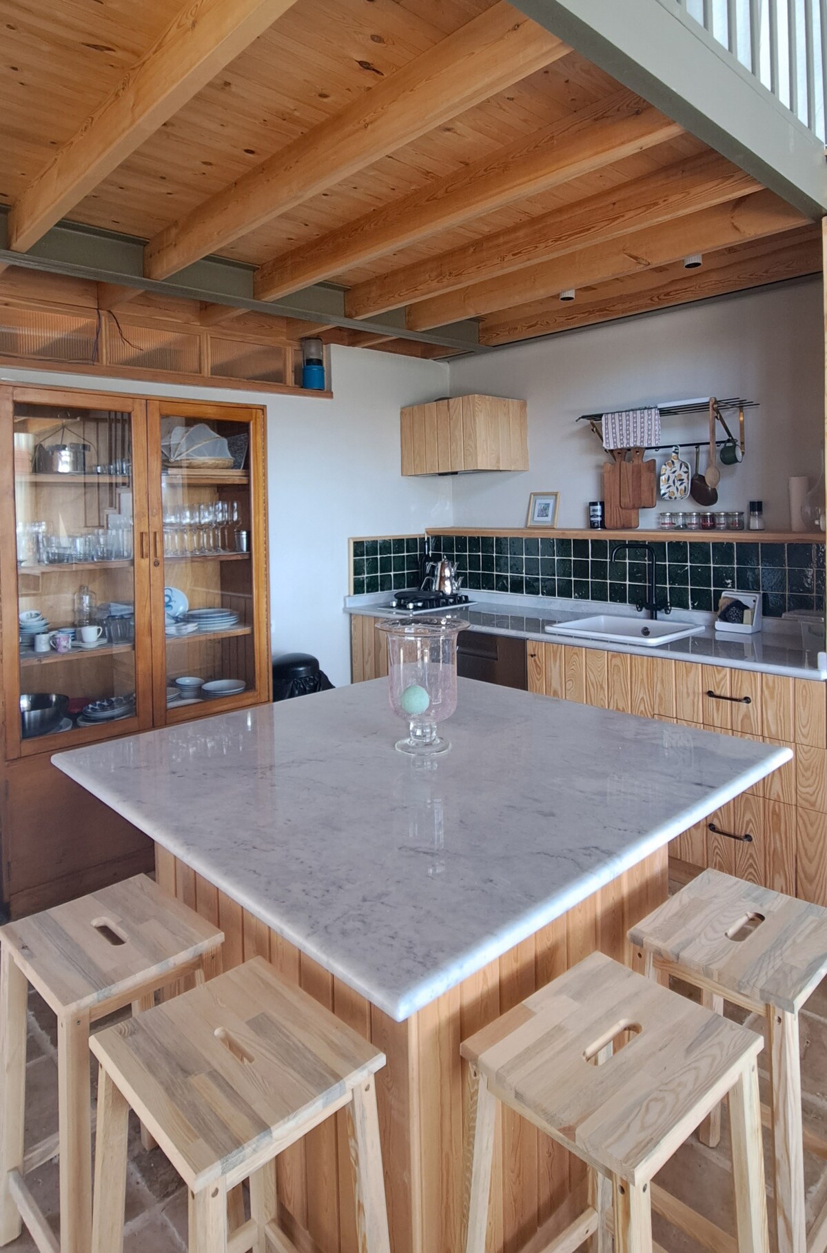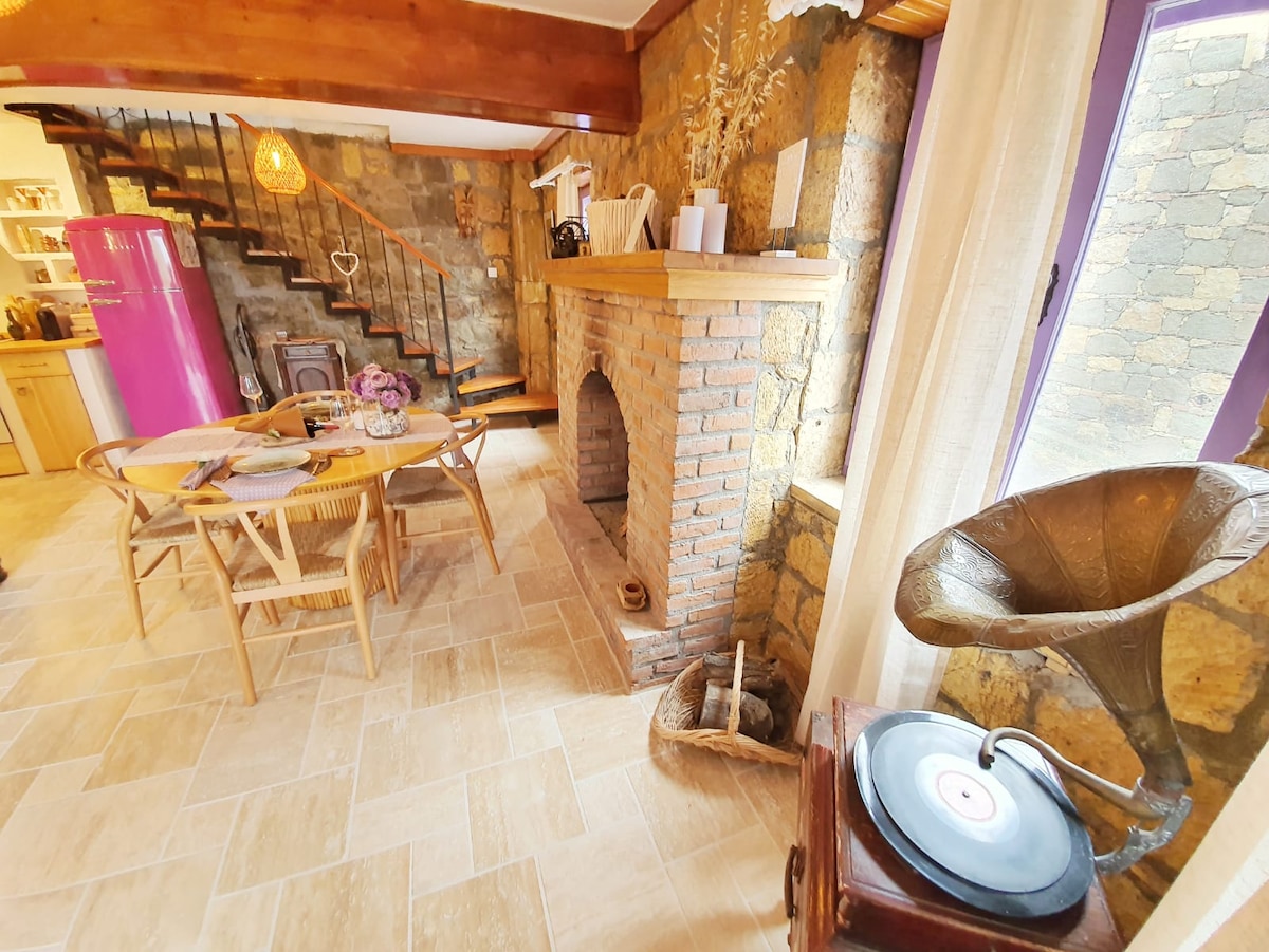 Nuestra casa de piedra con ventanal, una superficie interior de 55 m2, más de 100 m2 con su propio jardín y un aparcamiento común adicional y huerto de frutas y verduras, está diseñada para que dos personas o familias pequeñas se alojen cómodamente. Podrás disfrutar de la vista al mar Egeo desde casi todas partes de nuestra casa durante todo el día; podrás disfrutar de la cena con la exquisita vista bajo los árboles con la ensalada y barbacoa que has preparado con las verduras que recoges del huerto en nuestra cocina al aire libre.